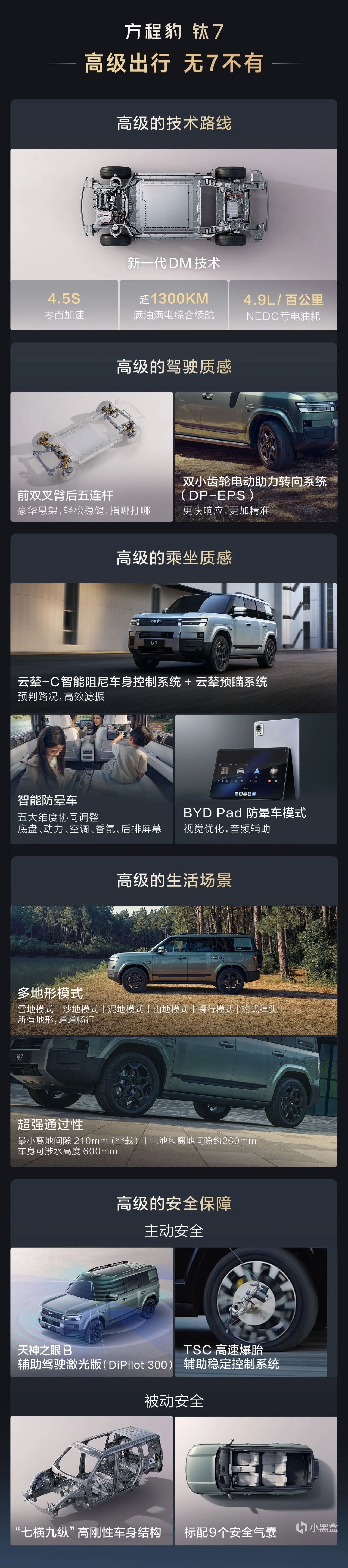 採用承載式車身結構,基於比亞迪 DM-o 超級混動越野平臺打造,兼顧舒適性與輕度越野能力。