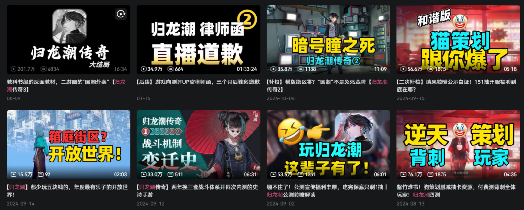 B站up主@朱子雀,在《归龙潮》测试期间就在关注这款游戏,并且也不断地在做相关视频,从最开始的评测,逐步转向了锐评。在这个事件当中,双方拉锯持续了相当长一段时间,可以说因为这件事,《归龙潮》所面临的舆论环境一步步走向了恶化,对游戏的拉新以及持续运营都造成了影响。