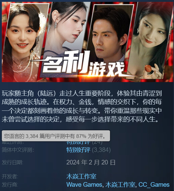 2024年,木焱工作室推出影游《名利游戏》(又名《高启强模拟器》《我在异世界撩大嫂》),口碑跟销量都不错,被部分玩家视为「正统影游接班人」。