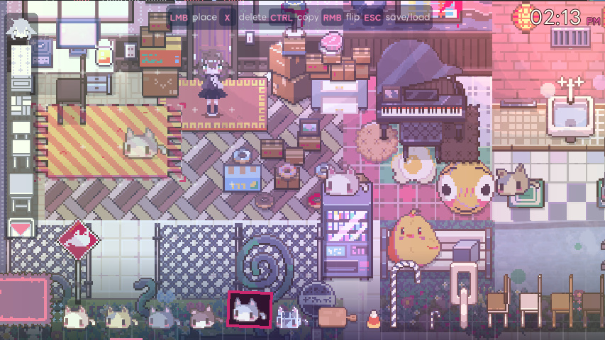 你通过放置地板,家具🪑,墙面,窗户🪟,小猫猫,花朵等