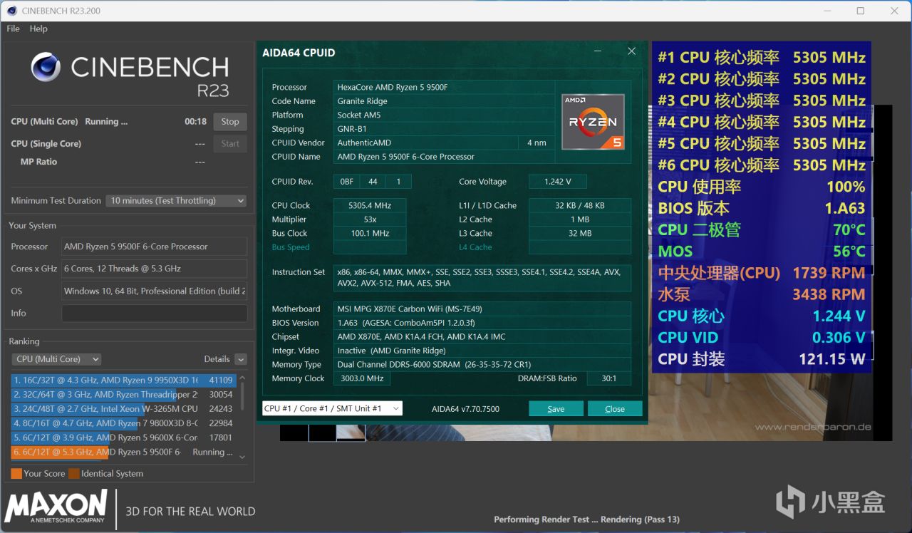 不过异步8000C32这种极致调教,整体而言并没有同频6400C26效果好,关键内存电压还得加更高不划算,至于CPU全核5.3GHz感觉是大众水平,超完就是和9600X几乎没有差别了。