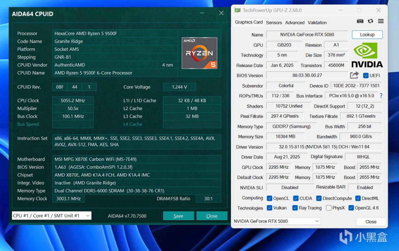 显卡则是NVIDIA GeForce RTX 5080最大程度降低显卡瓶颈,操作系统是Windows 11 24H2,显卡驱动是GameReady 581.15 WHQL版本,所有测试基于26℃开放平台下进行。