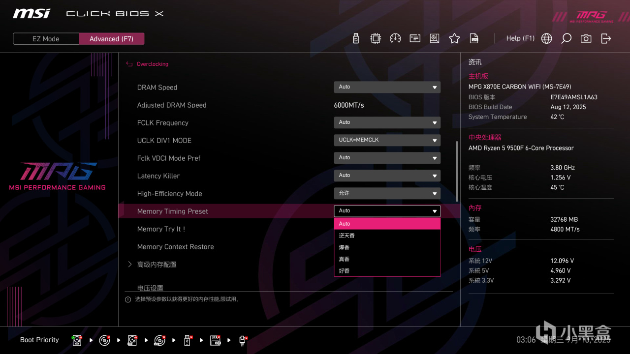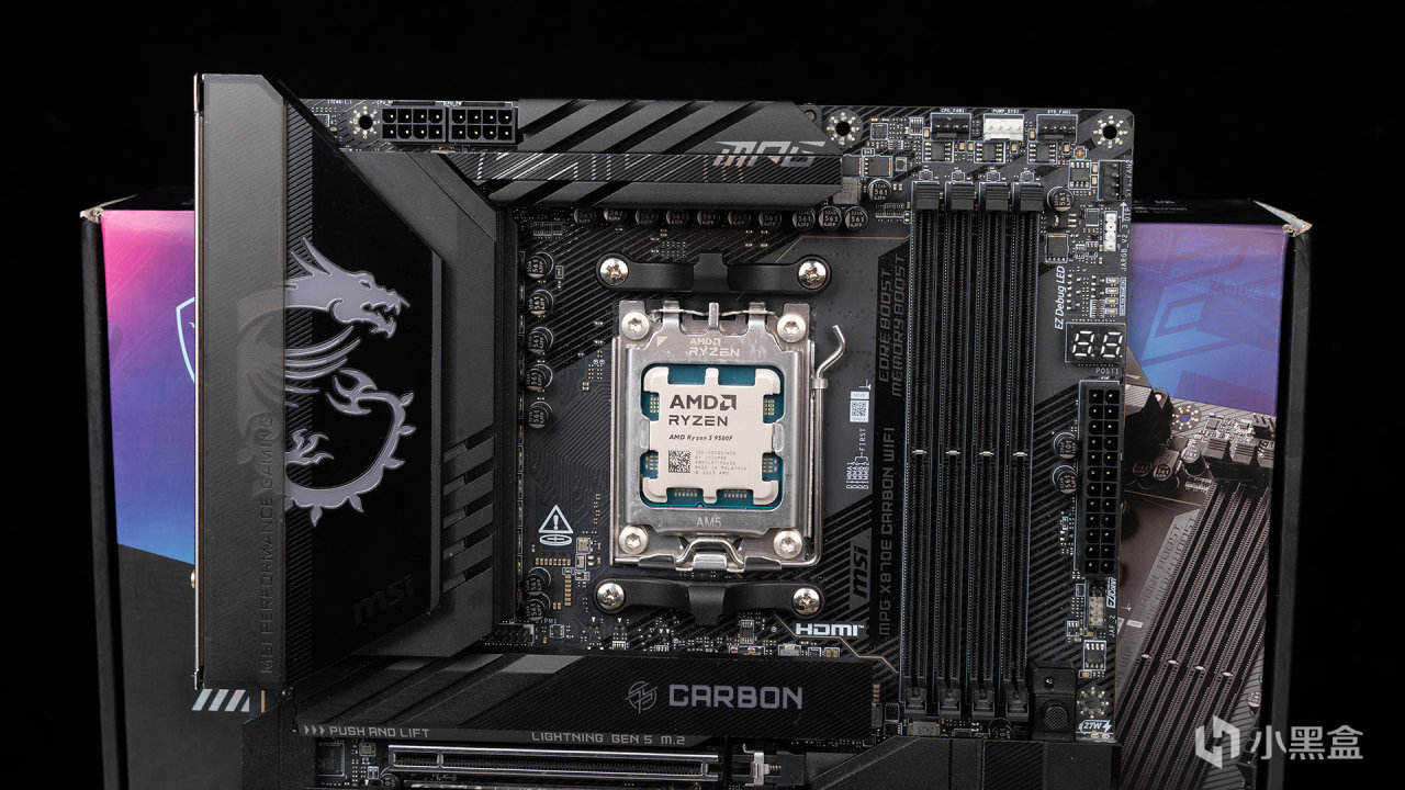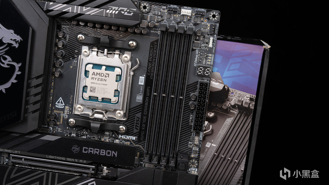 本次测试主板来自微星的MPG X870E CARBON WIFI暗黑,实则9500F搭配主流B850M即可,对于超频也不会太大影响。