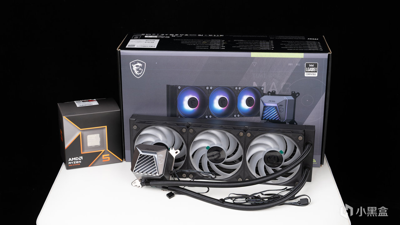 为了最大程度确保超频顺利进行,这里使用水冷散热器压制9500F——来自微星MAG CORELIQUID A15 360冰刃。