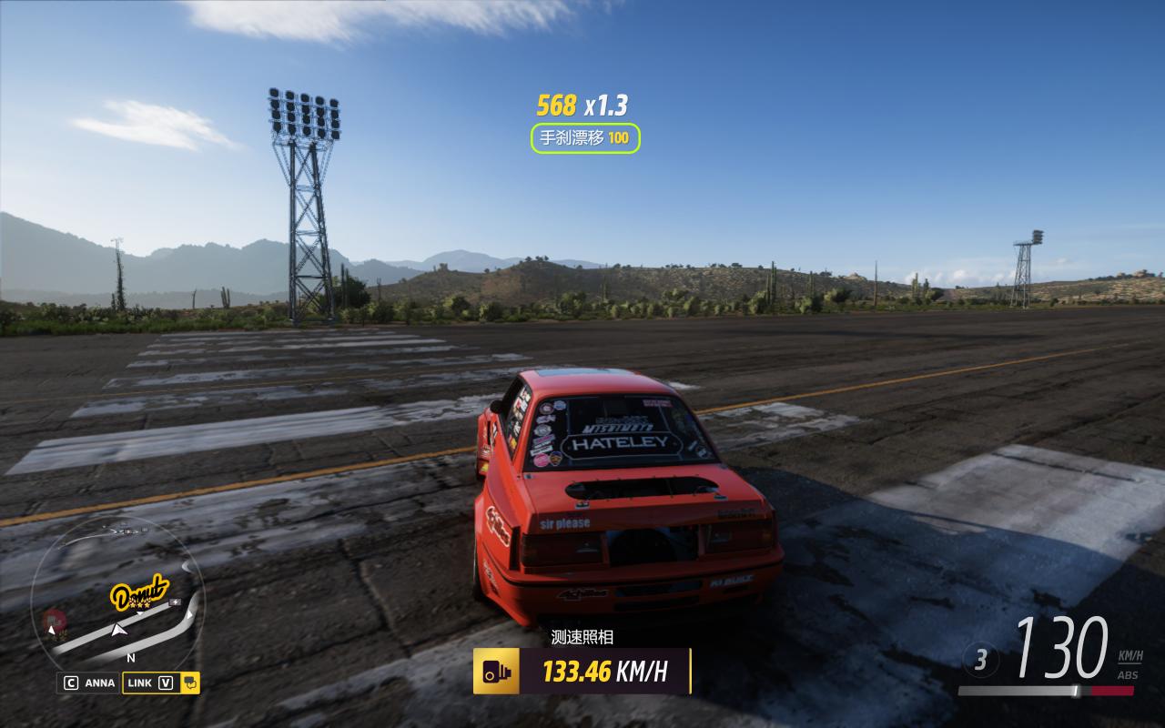 FH5 的官改漂移車足夠強勁,利用剎車、手剎控制車輛動態,鎖定 3 -4 擋也能輕鬆完成挑戰。