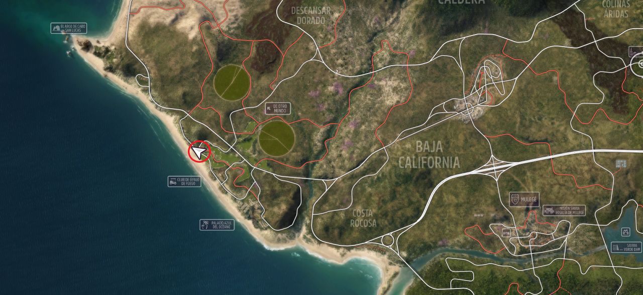 火歐泊石俱樂部的位置參考上圖,在地圖左側的海岸線邊上。