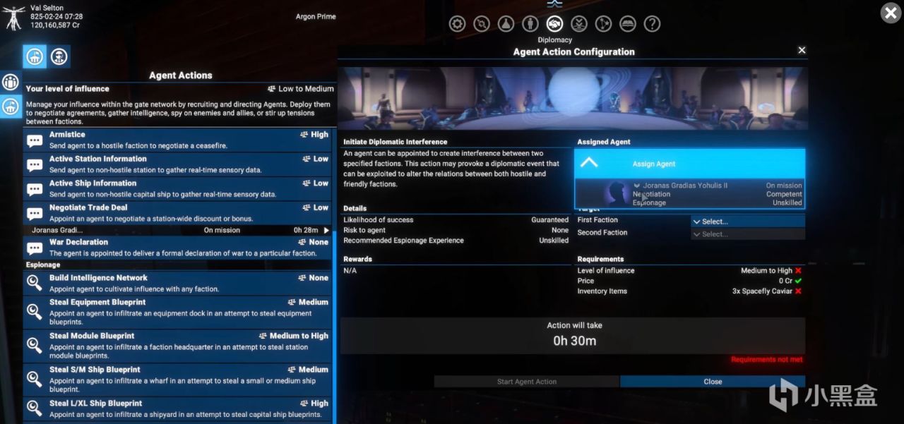 特工是一类新的可雇佣 NPC,他们可以专精于谈判或间谍活动。招募并指派一艘船舰后,特工可以被派去执行各种外交行动 - 谈判玩家关系、侦察敌方船舰,甚至在暗中制造混乱。