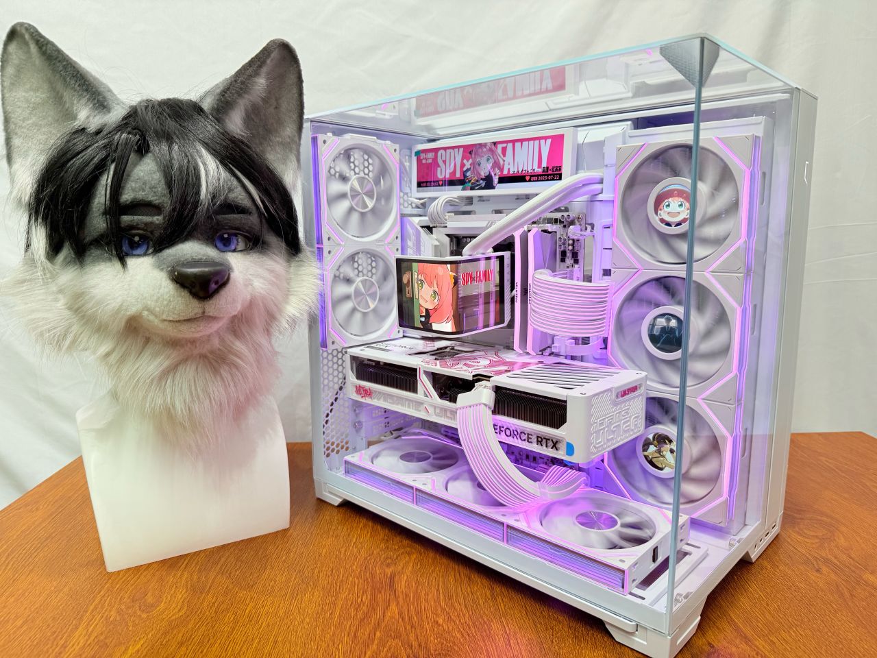 考虑到七彩虹ultra的粉色涂鸦所以我整个机箱选择了粉色灯光,搭配上阿尼亚的美图可以说是相得益彰了