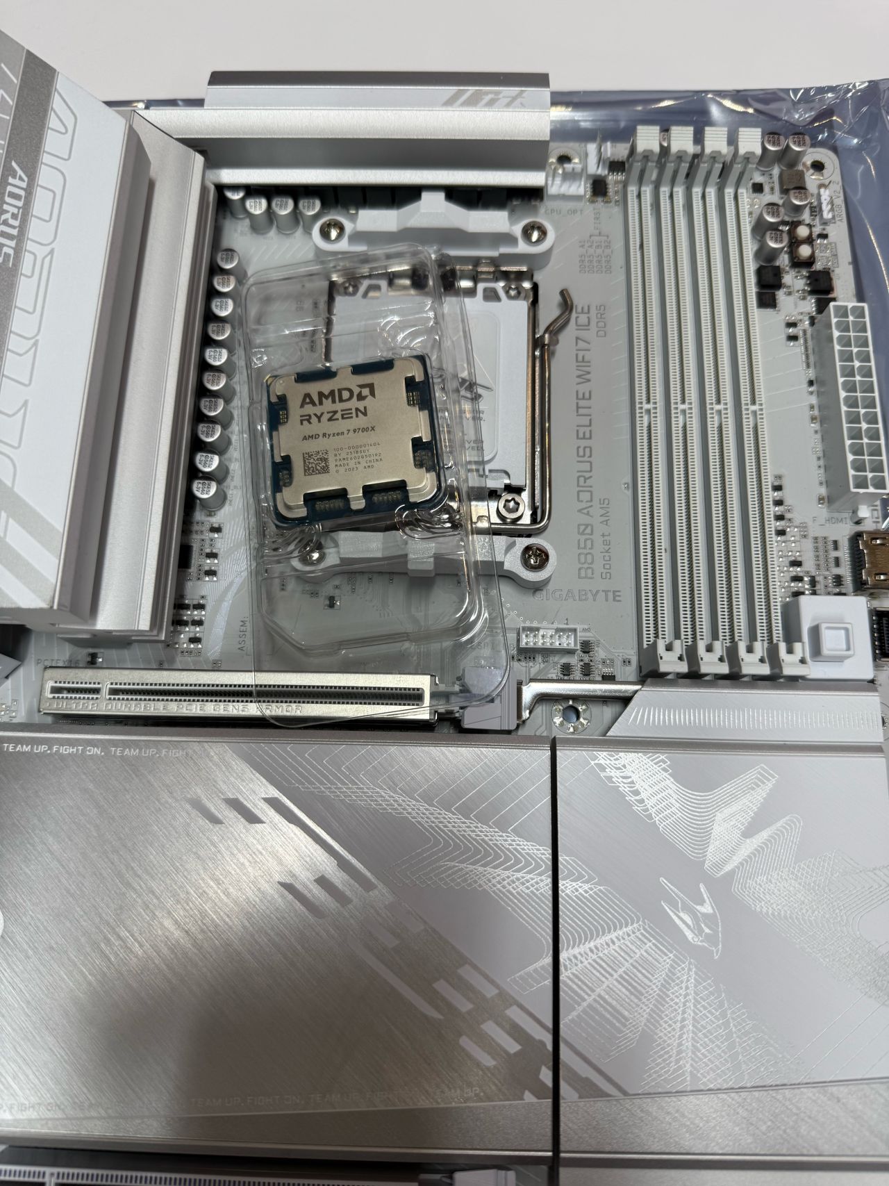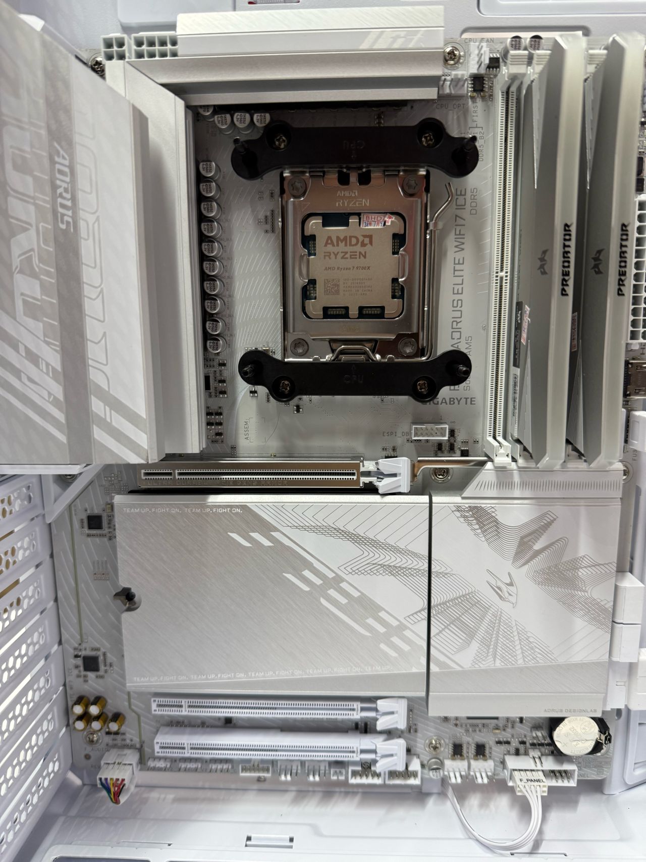 主板这里我选择了技嘉B850冰雕大板,这块主板供电设计为14+2+2相,与竞品大吹雪及刀锋钛一致,这样的供电设计连9950x3d都能轻松跑满,更不要说我们这一期上的9700X了