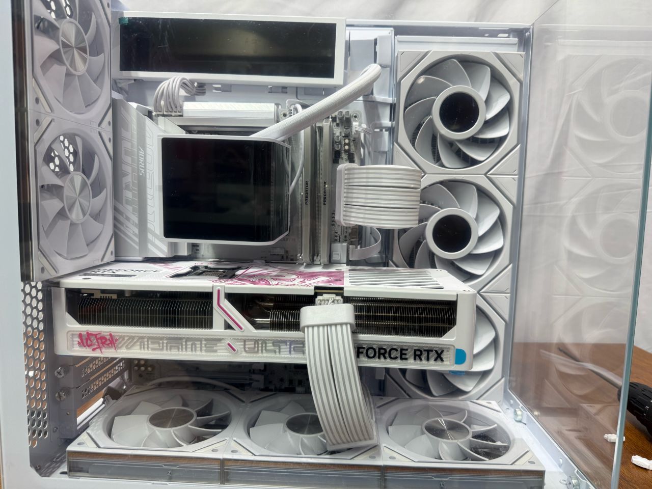 夹汉堡的风扇以及冷头安装到位后继续补全机箱风扇