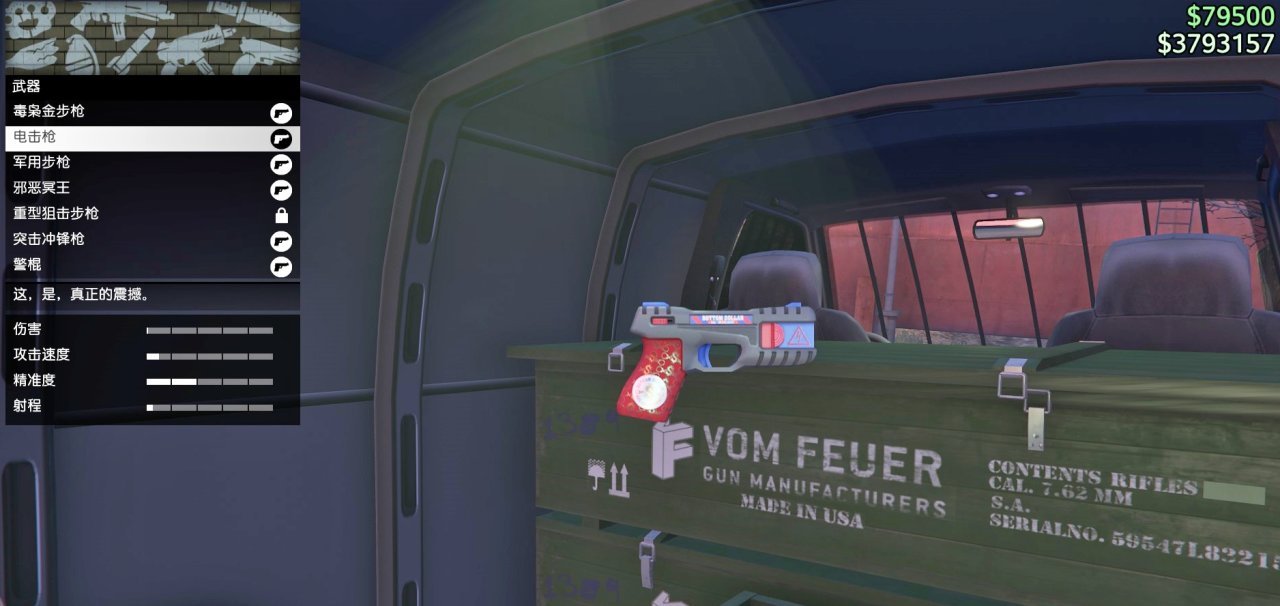 [厢型车]:免费领取棒球棍,防弹衣7折,制式卡宾步枪6折,电击枪会员7折