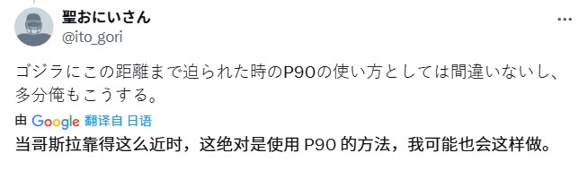 當一隻哥斯拉衝你襲來,而你手上有一隻【P90衝鋒槍】,你會選擇怎麼做?