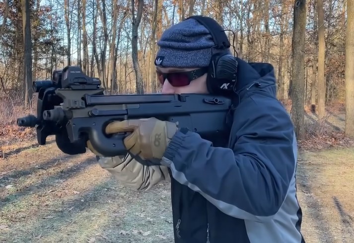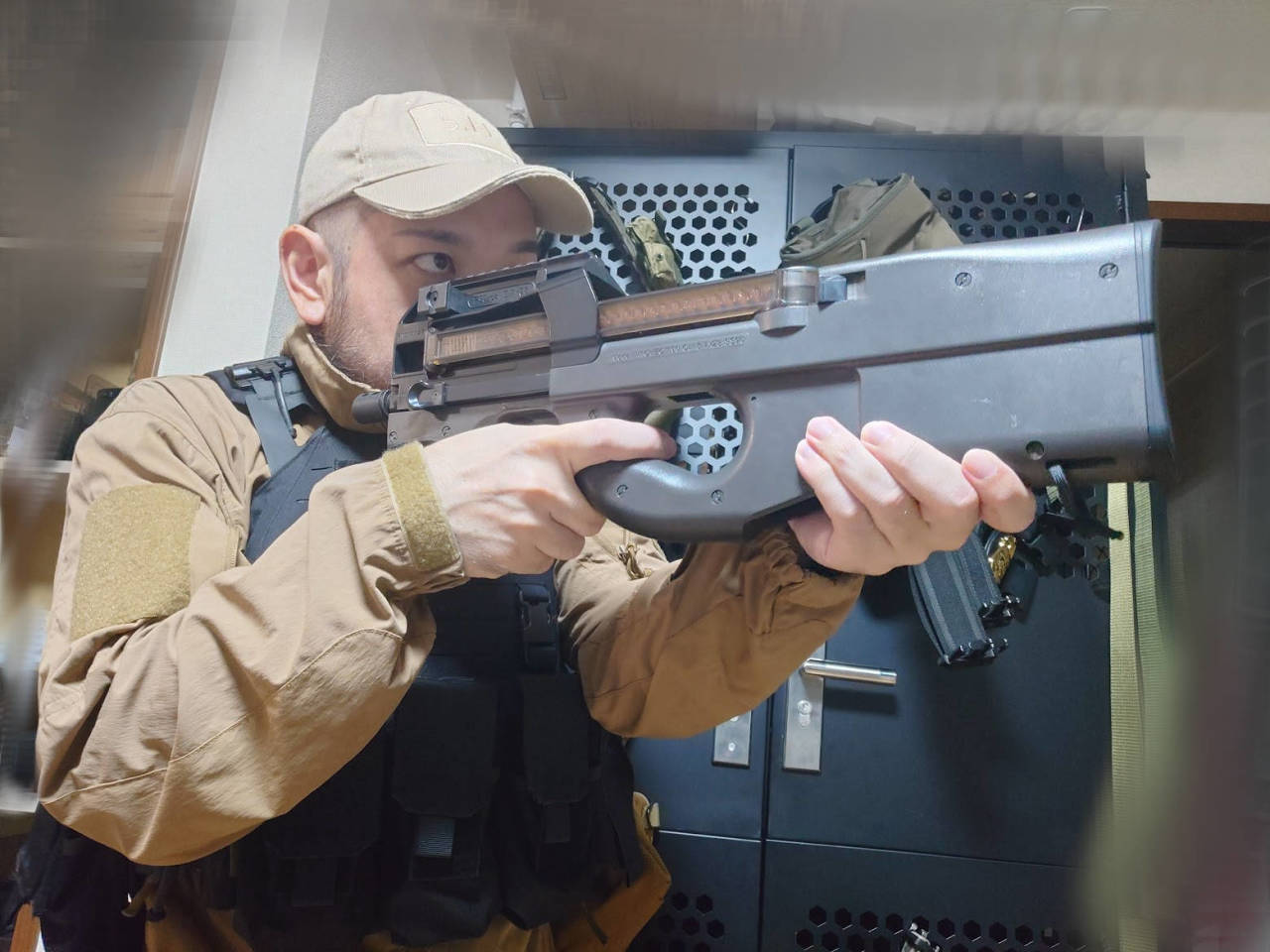 通過下圖的P90實物,我們可以清楚地看到,P90正確的持槍姿勢是什麼樣的(正常情況下,沒拿反的樣子)。