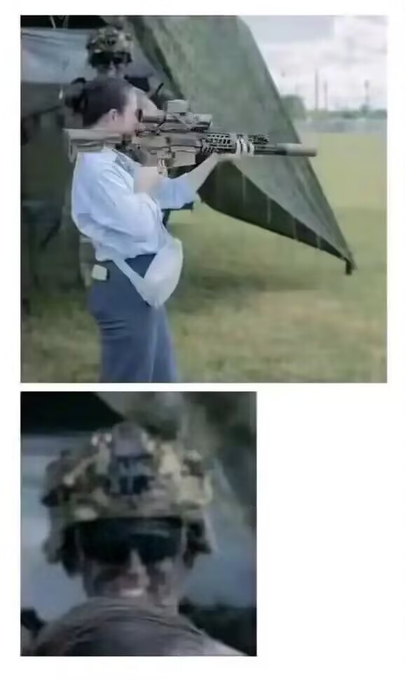 這張就可以清楚看到了,確實是槍口對準了自己...
