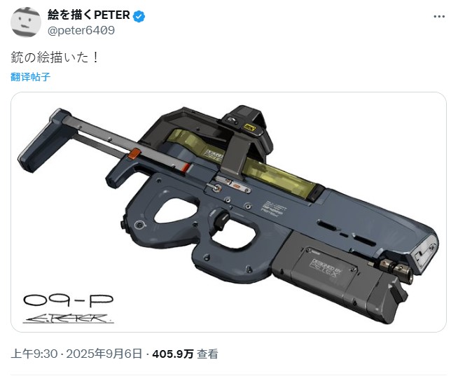 畫師@peter6409還根據這個【反握 P90】笑話,繪製了一把【09-P】槍...