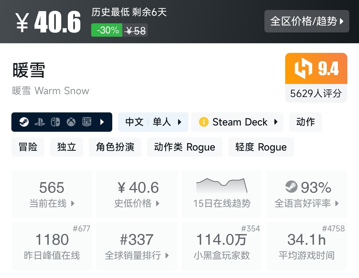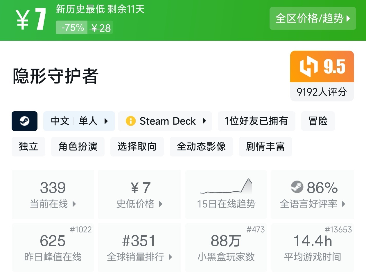 大家好,没错,又是我,你们的老朋友亦然,这期帖子,如你所见,是一期关于史低游戏的汇总,最近的史低游戏只能说很多,当然,其中就有很多折扣力度大,而且好评率高的游戏,很多盒友都喜欢史低游戏,因为谁都想用最低的价格买到一样的东西,我将为各位进行一个汇总,希望我的汇总,能够帮助各位盒友挑选心仪的游戏。