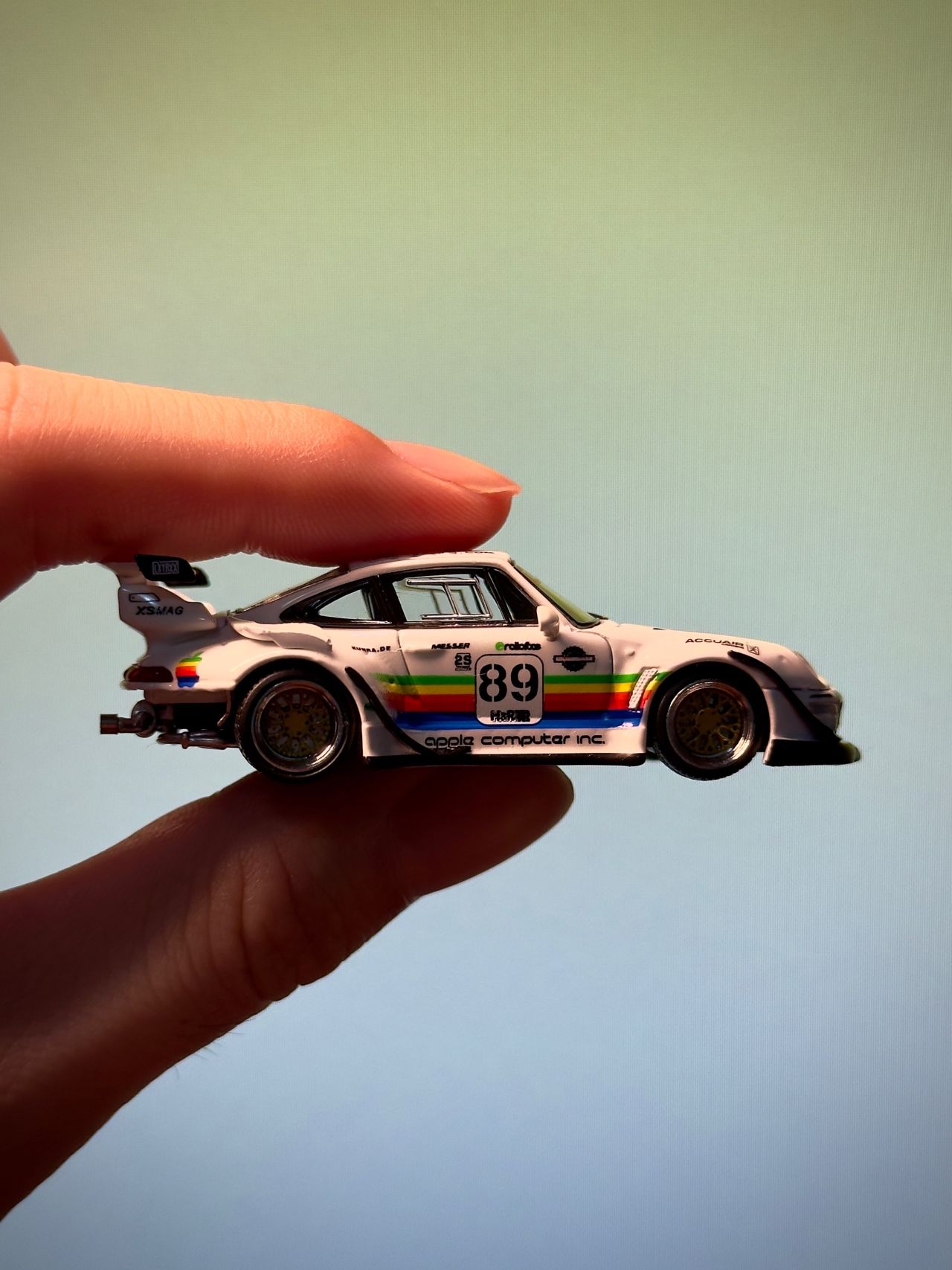 1979年,蘋果曾涉足賽車賽事,贊助了一輛保時捷935賽車,那時的蘋果仍由喬布斯掌託,標誌也由七彩顏色構成。第二年的勒芒賽場上,這輛由機械和科技相碰撞而產生的賽車在飛馳了13小時後遺憾退賽,但是也創造了一個跨界傳奇