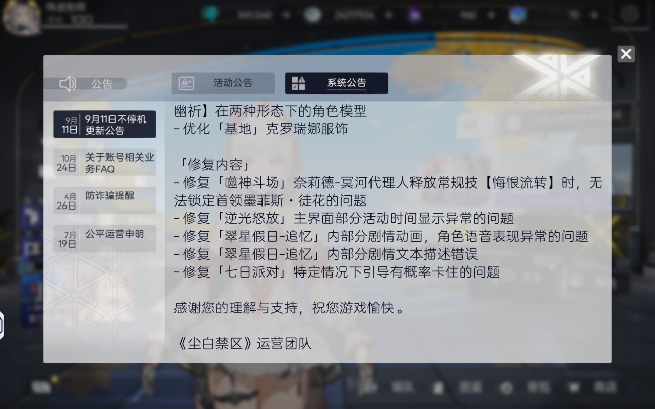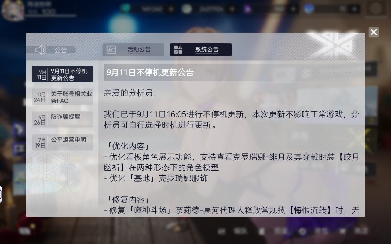 我們已於9月11日16:05進行不停機更新,本次更新不影響正常遊戲,分析員可自行選擇時機進行更新。