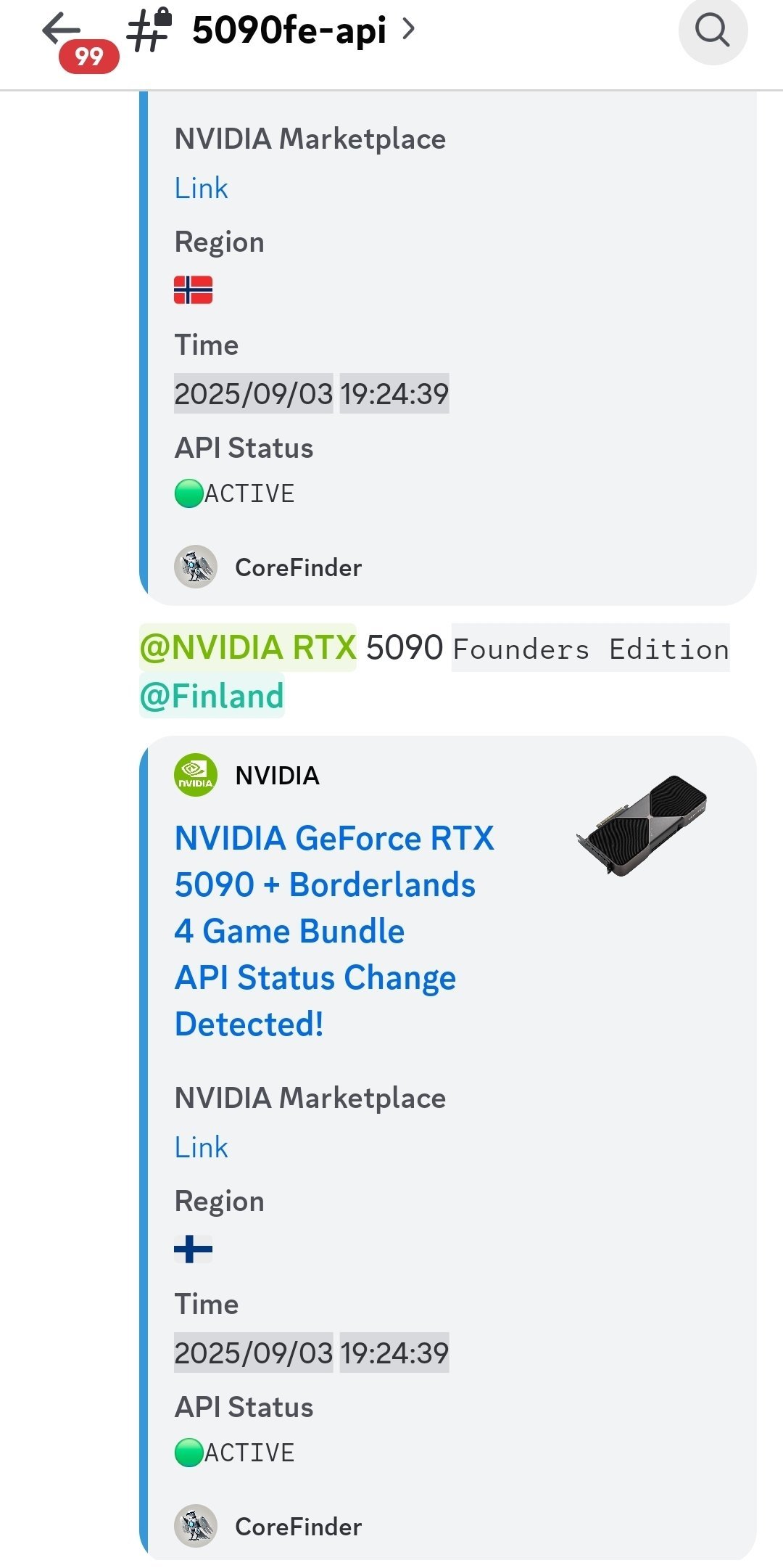 聽說國內隨便買,但在牢英還是要用搶的。樓主的老公讓樓主關注一個Discord頻道,實時監控5090上架動態,關注了有一個多月總算搶到一塊。
