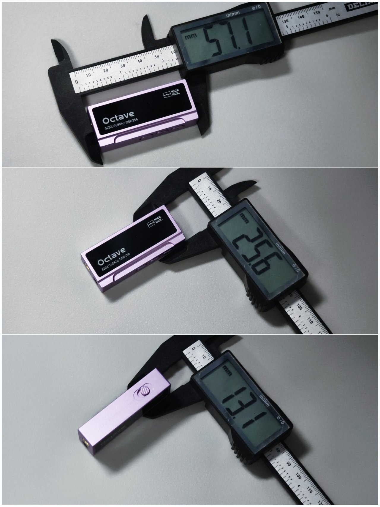 把這款耳放拿出來後你會發現它非常的小巧,具體尺寸爲:57mm×25mm×13mm。差不多就比我的相機電池大一點的,可以輕鬆放入胸口口袋 ,日常攜帶還是比較方便的