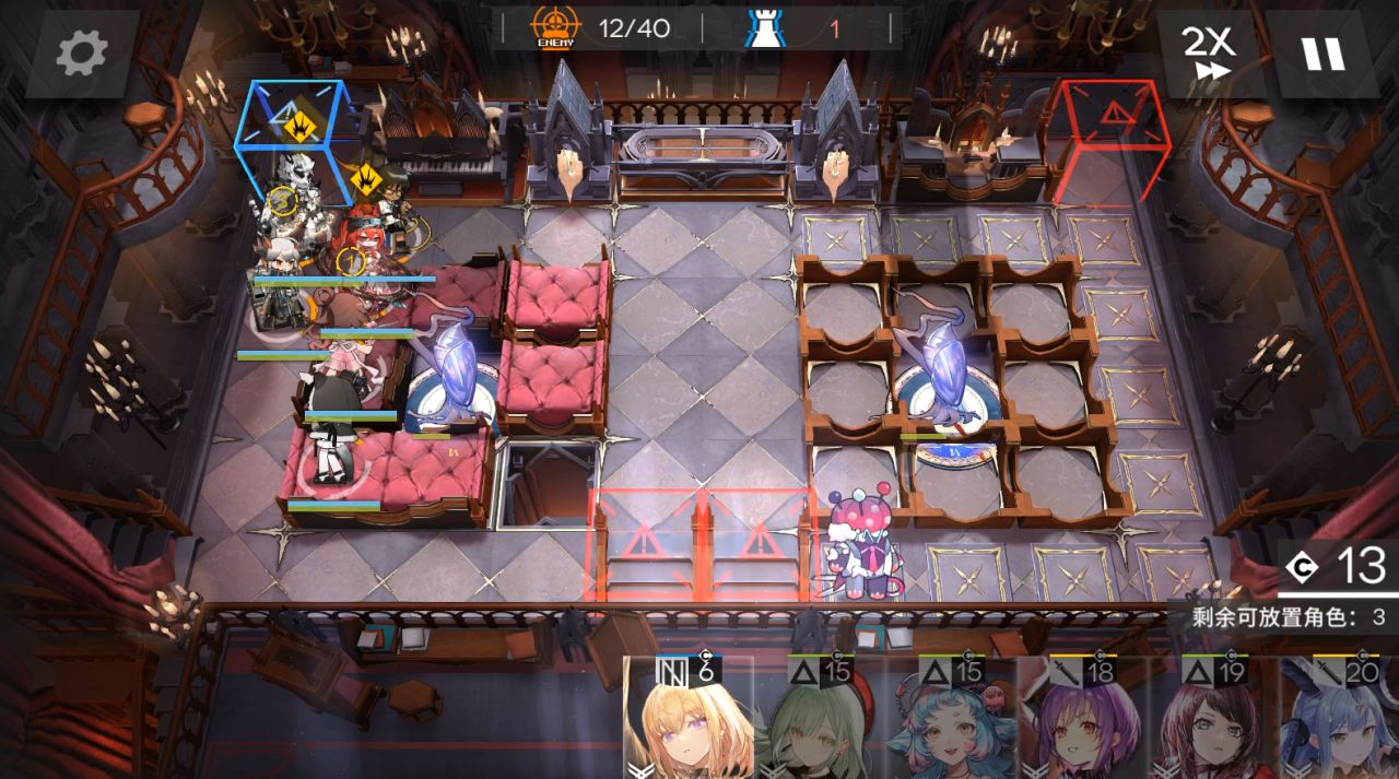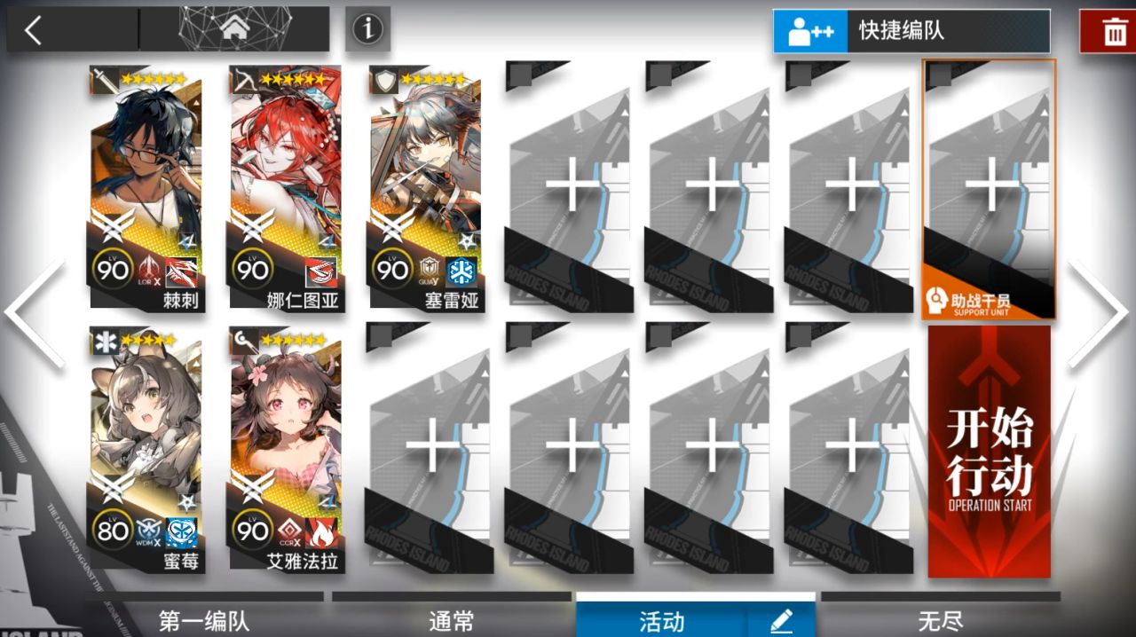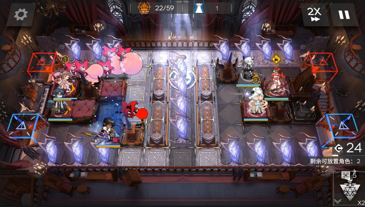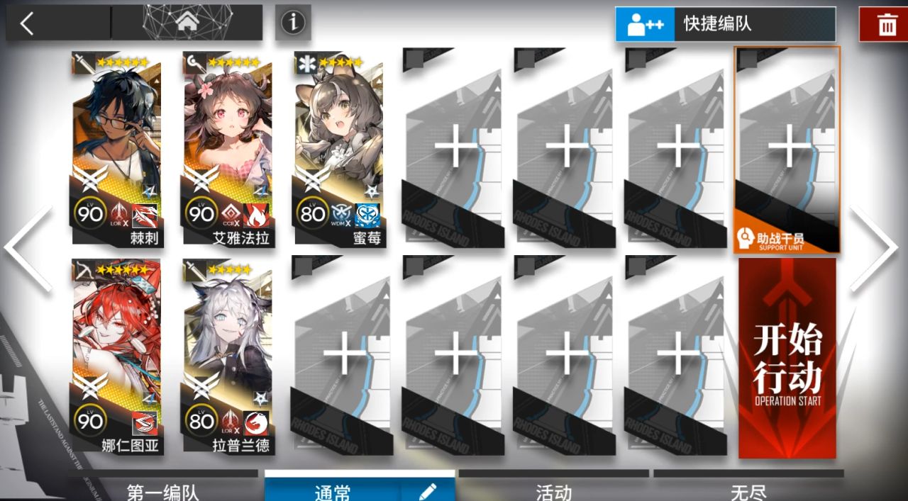 依次部署棘刺朝左,蜜莓朝上,拉普朝右,小羊朝左,大姨朝上挂机。