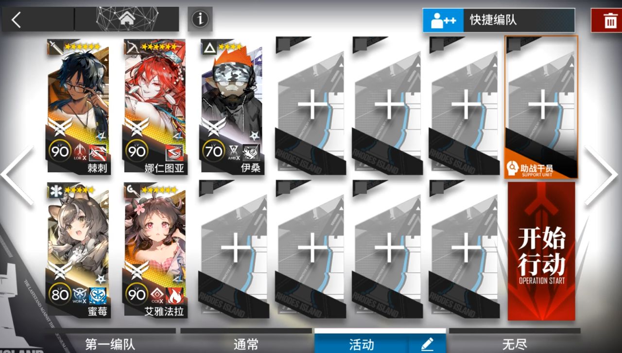 依次部署棘刺朝左,大姨朝左,小羊朝左,伊桑朝上,蜜莓朝左挂机。