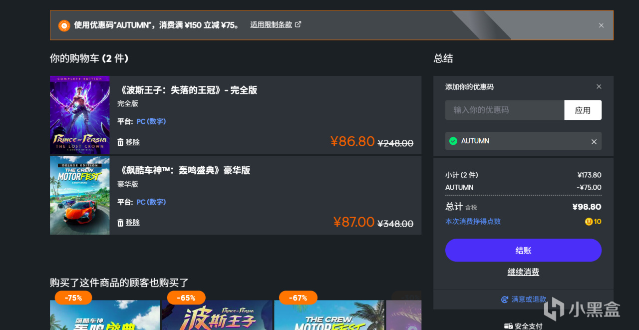 以上便是部分凑满减的指南,大家可以等价去自行根据需求调整凑满减的游戏,150-75还是很香的,趁这个机会可以凑点玩玩试试!
