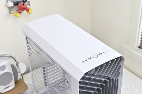機箱頂蓋是密封的,ABS 塑料材質。前方是機箱 I/O 開關及接口。