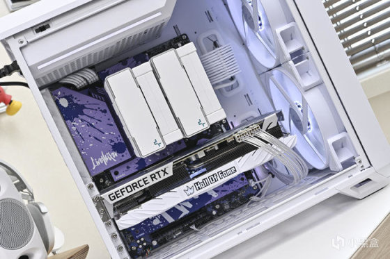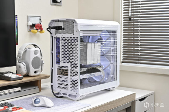 整機白色調,保留主板背側、內存與顯卡白色 RGB 燈效(R40,G40,B40)淡淡的點綴。