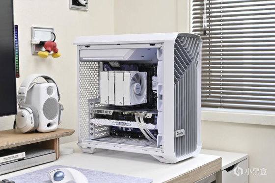 今天裝一臺短風道高風量風冷主機——分形工藝 Torrent Compact RGB 極光白。這款機箱是此前 Tottent Compact 標準白色版的升級版本,尺寸爲 450x222x467mm,整機尺寸各方面沒有變化,在細節和燈效方面做了提升,整機所有板材、線材、風扇甚至是主板塑膠擋線板都做了白化處理,前置雙 18cm 風扇升級爲 AL-18 PWM RGB,低轉速也能保證高風量,這也是這款最強風冷機箱的靈魂所在。塔式風冷支持最大 174mm,需要注意的是,這款機箱內部縱深較短,要處理好顯卡和前面板風扇的尺寸搭配:默認雙 18cm 風扇狀態下顯卡長度最大 330mm,前方安裝 12\14cm風扇情況下,顯卡最大支持 343mm;若前方風扇上移沒有風扇遮擋,則顯卡支持最大 368mm。底部和尾部風扇個人不建議安裝,前置兩把大風扇足夠吹透,過多的風扇只能帶來更多的噪音。
