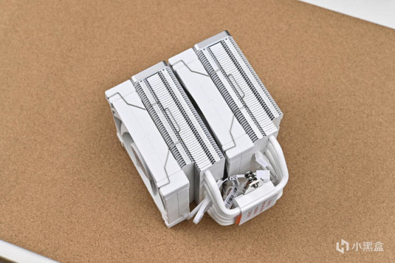 散熱器雙塔結構搭配兩把FK120風扇。冰立方AK620散熱器散熱風扇的型號爲FK120,4Pin PWM接口,額定參數爲12V/0.12A,最大功率爲1.44W,採用FDB軸承等靜音設計,轉速範圍爲500-1850RPM,使用壽命可達五萬小時,噪音控制在28dB以內,風扇可根據系統負載動態調節轉速。