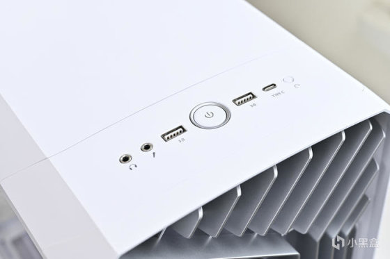 機箱的 I/O 口位於頂蓋前部,提供 1 個 USB 3.2 Gen 2 Type-C 口與 2 個 USB 3.2 Gen 1 Type-A 口,還有 2 個 3.5mm 的耳機和麥克風接口。
