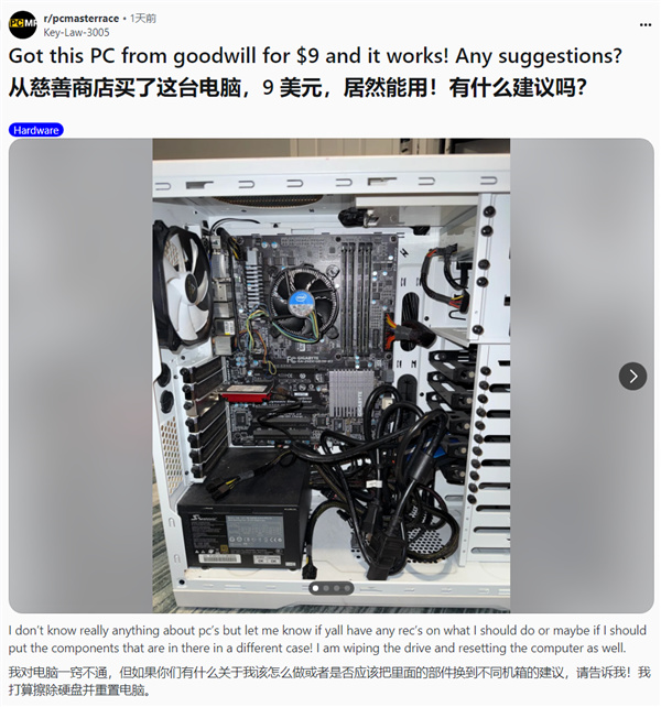 不久前我们刚刚分享过,一位电脑新手在论坛上分享了自己在当地的Goodwill二手店淘到的主机,以令人难以置信的9美元(约64元人民币)买到了一台二手电脑。
