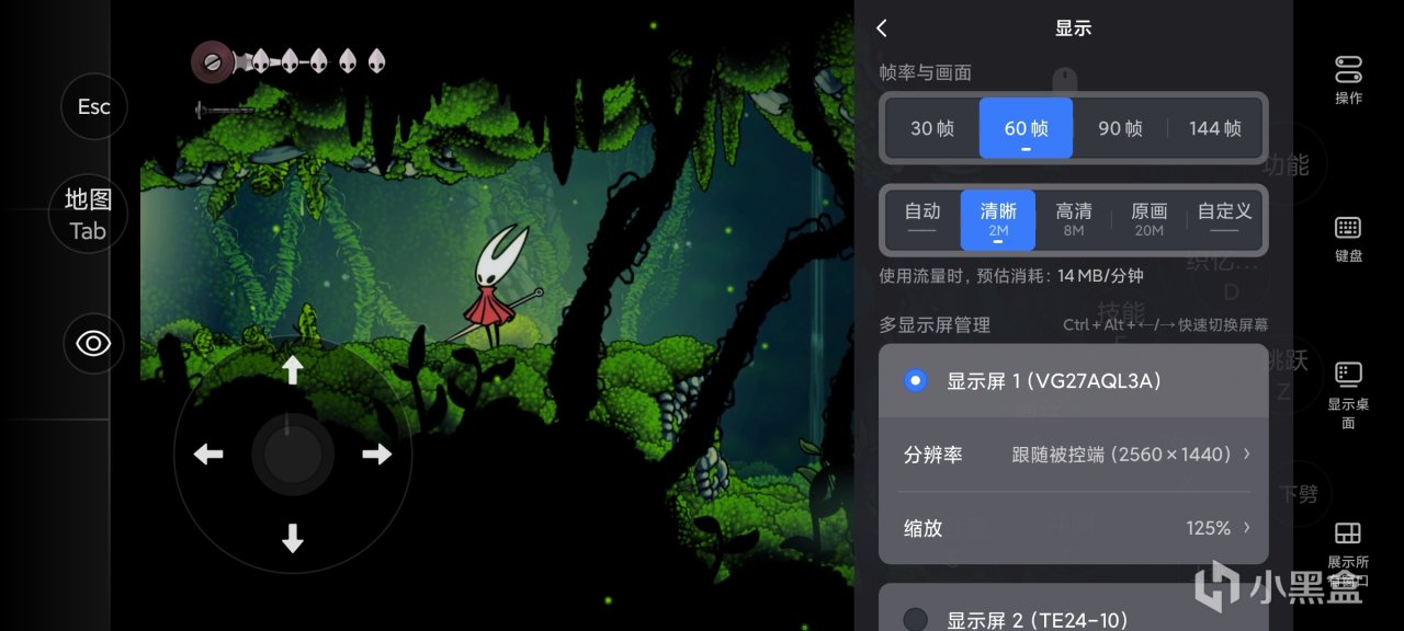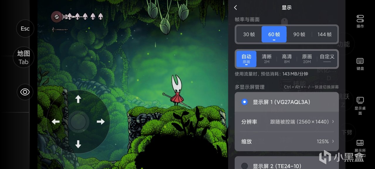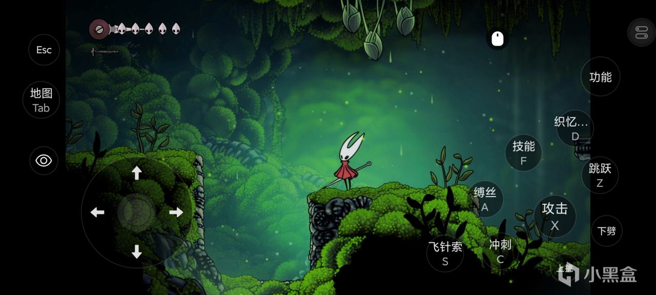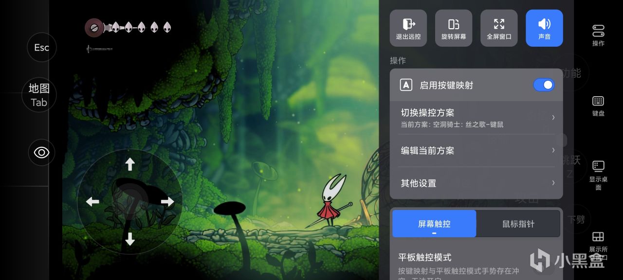 奧利奧用手機測試了近期大熱遊戲《空洞騎士:絲之歌》,右邊欄操作裏可以選擇按鍵映射。