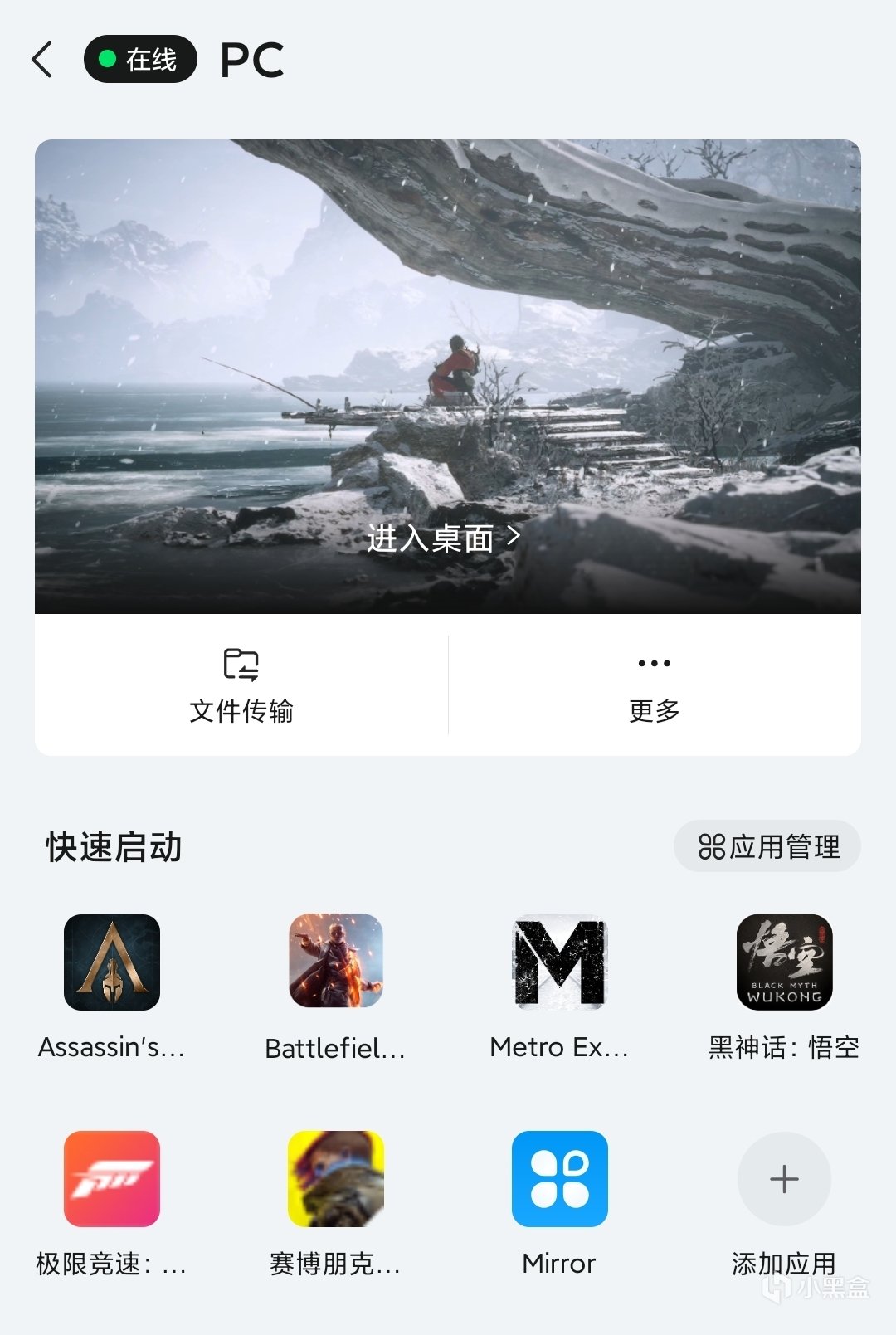 第二步,手機端點擊即可進入。點擊進入桌面,是直接遠程控制電腦。可以進行各種操作,比如有些遊戲不在Steam裏,也可以直接打開。