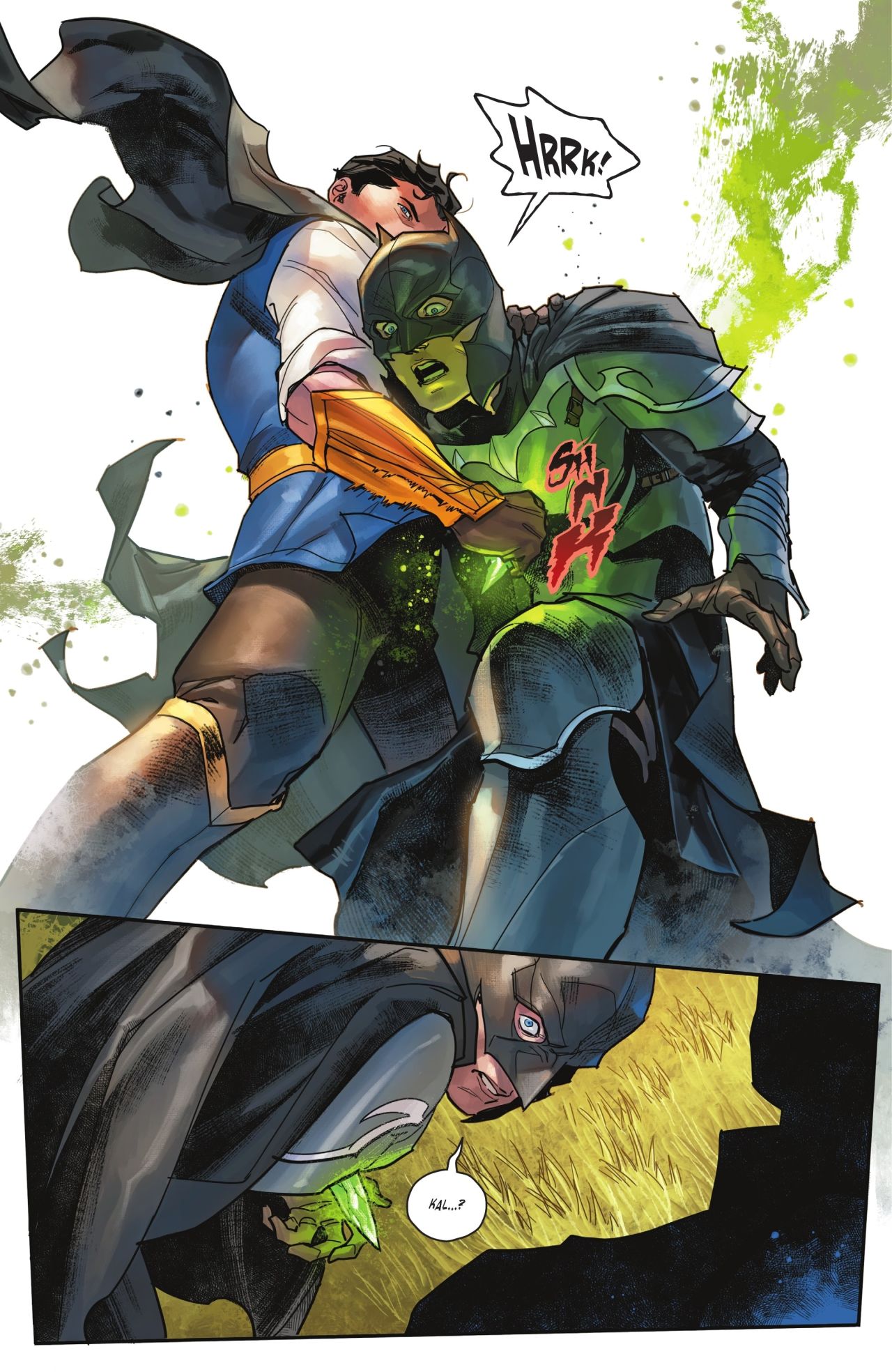 布魯斯在城外樹林將一小塊遺留的綠石碎片與緣由告知了卡爾王子,下一面就被卡爾拿碎片紮在胸口,狠狠丟向了遠方,剛好掉在了城外肯特夫婦的農場中, 被肯特夫婦收留的“泰坦們”所救。