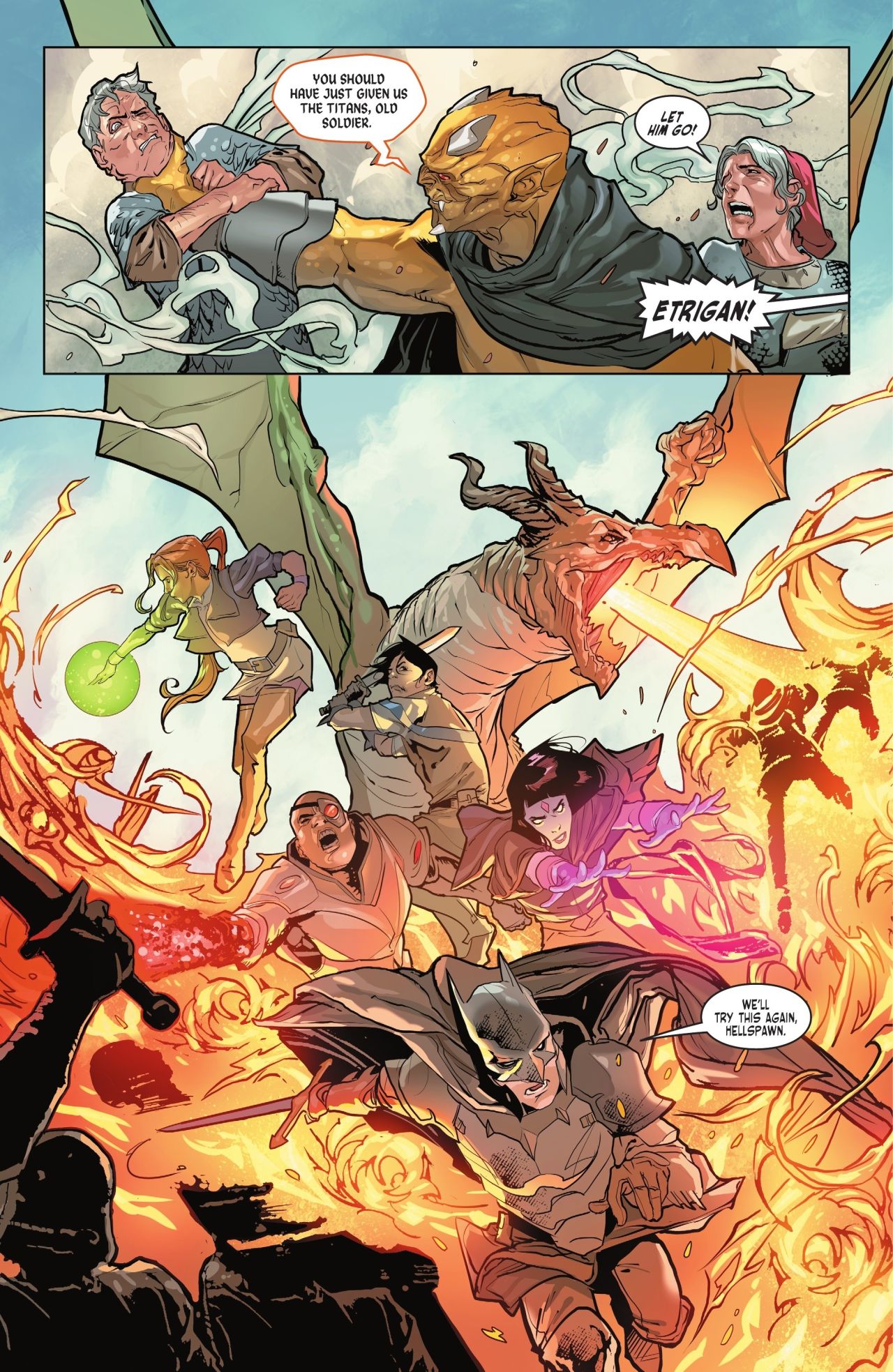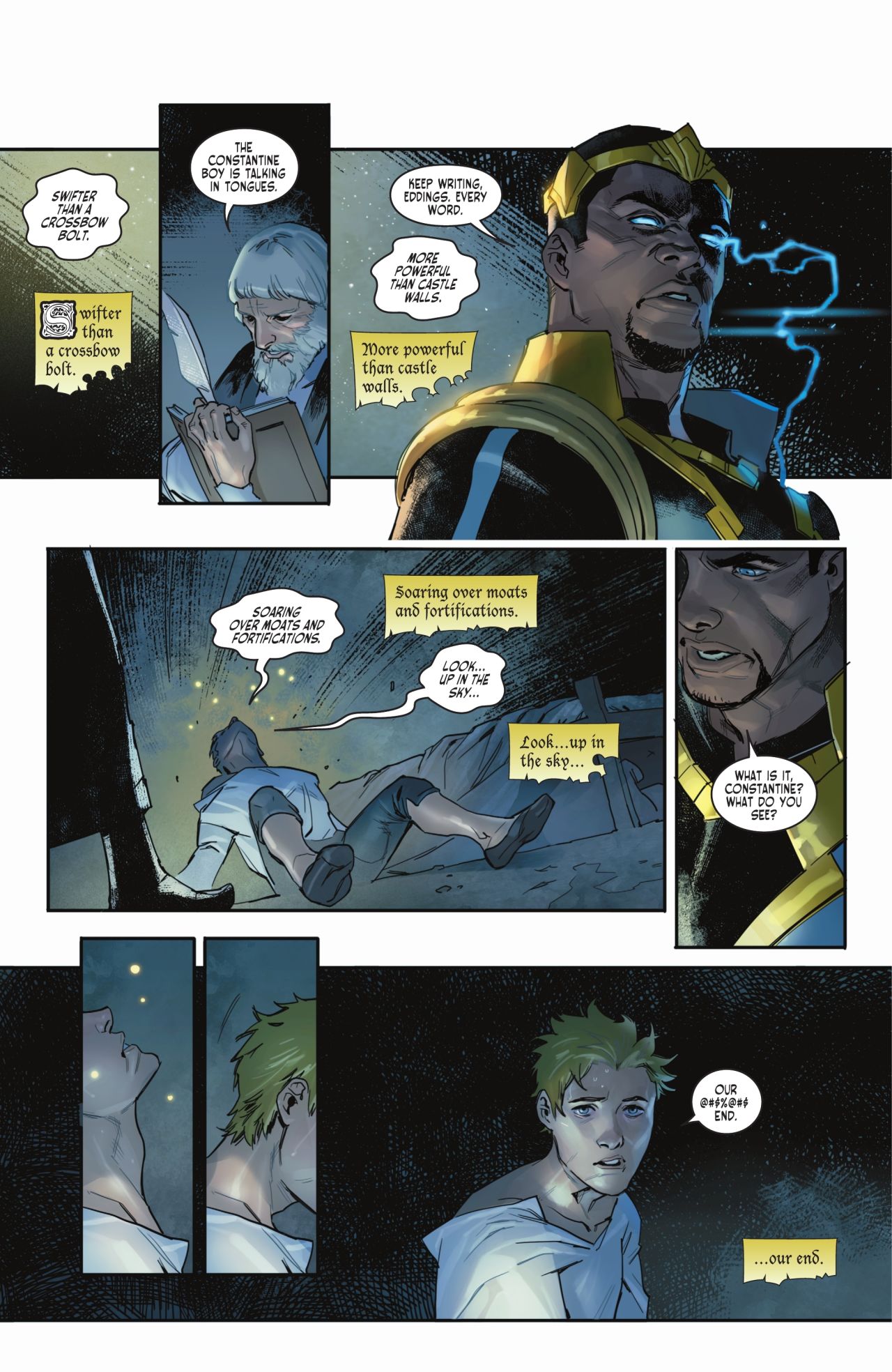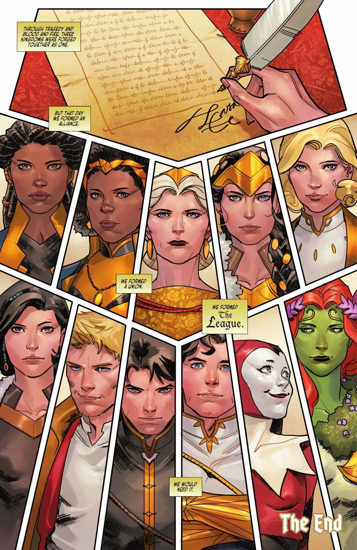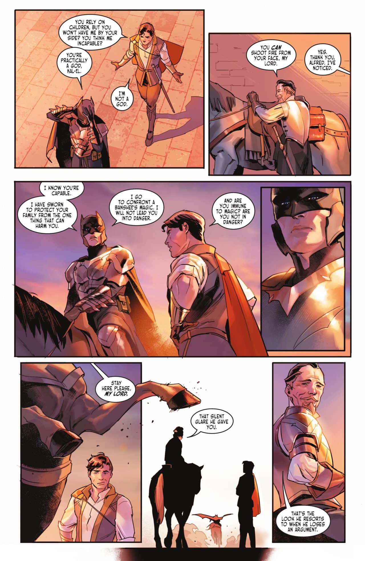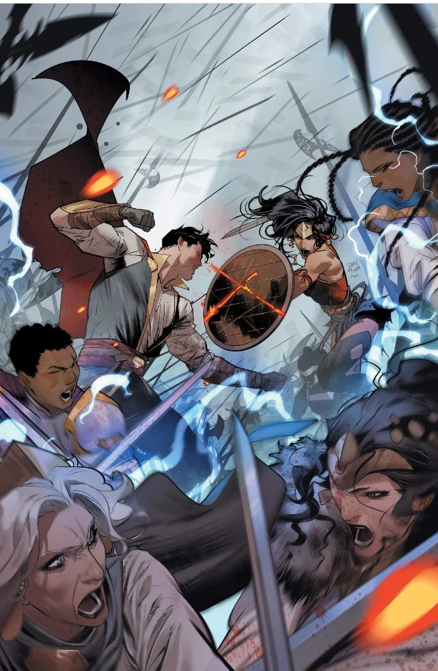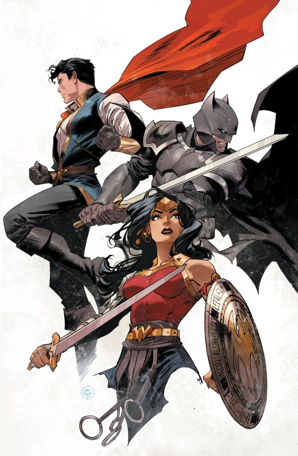 不過依託於其“特立獨行”的設定,加上偉大丹神(Dan Mora)的畫作加持,成爲了黑標中比較出圈的一篇故事,它把時間拉回了中世紀,而我們熟知的英雄也被二創、融合,在這一片神奇的大陸上交織着讀屬於他們的故事。