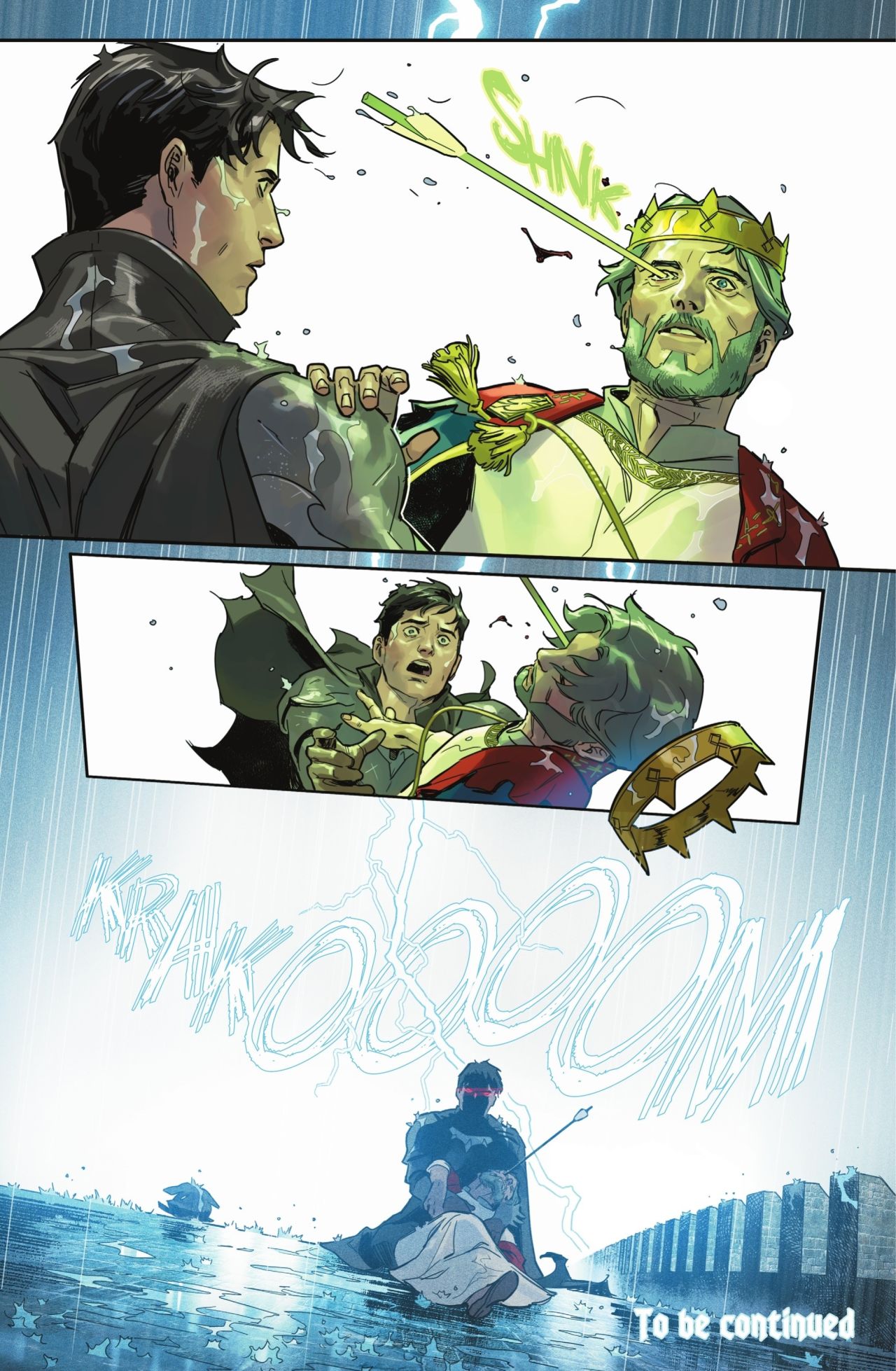但剛認親爹,喬艾爾國王就遭真正的刺客狙殺——一支由綠燈能量加持的綠箭。