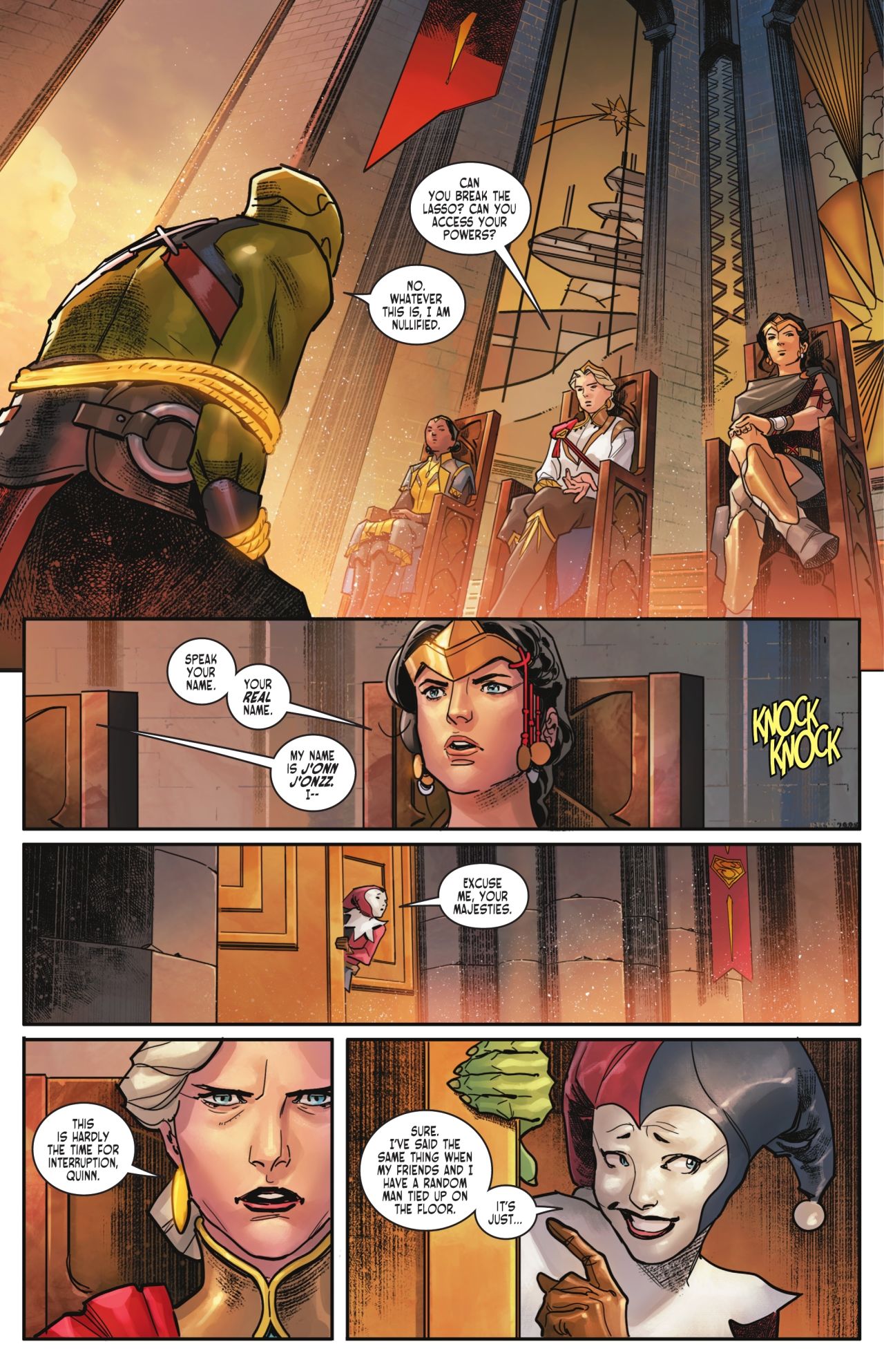 這天,因爲得知風暴王國派出了一位刺客,布魯斯誤認成了黑金絲雀黛娜將其捉拿,搏鬥途中被黛娜音波近距離轟擊兩聲而不死,但最後還是要卡爾飛來將其制服。