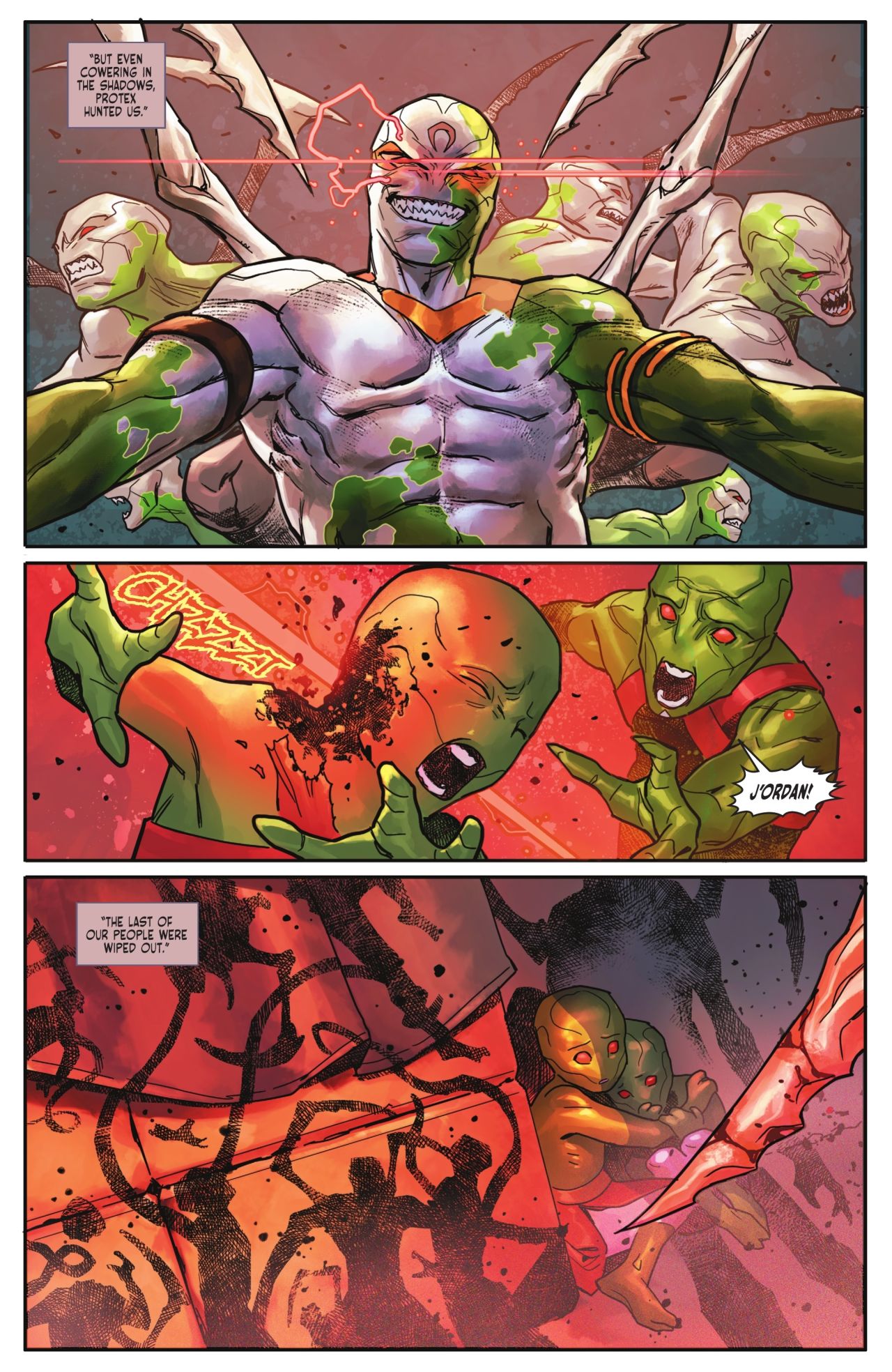 編劇創造性的將幾乎所有DC中比較出名的一二三線角色拉了出來挨個兒融合改造(說實話沒點功底還是蠻難的),又像《祕密戰爭》那樣加入了會變形又強大的白火星人充當內鬼,一個勁的挑逗讀者對真相的探尋,最後發現:原來都他媽是好人啊,合着大家都被內鬼耍的團團轉。