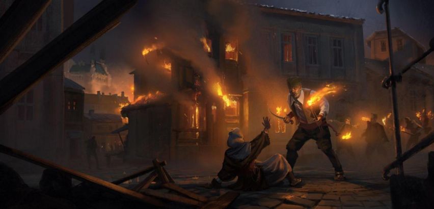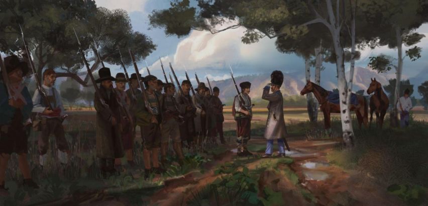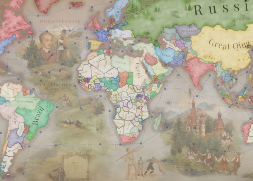 我們參考了奧地利帝國與其附屬國之間的互動,爲National Awakening帶來了城鄉生活對比與文化衝突主題的插畫。