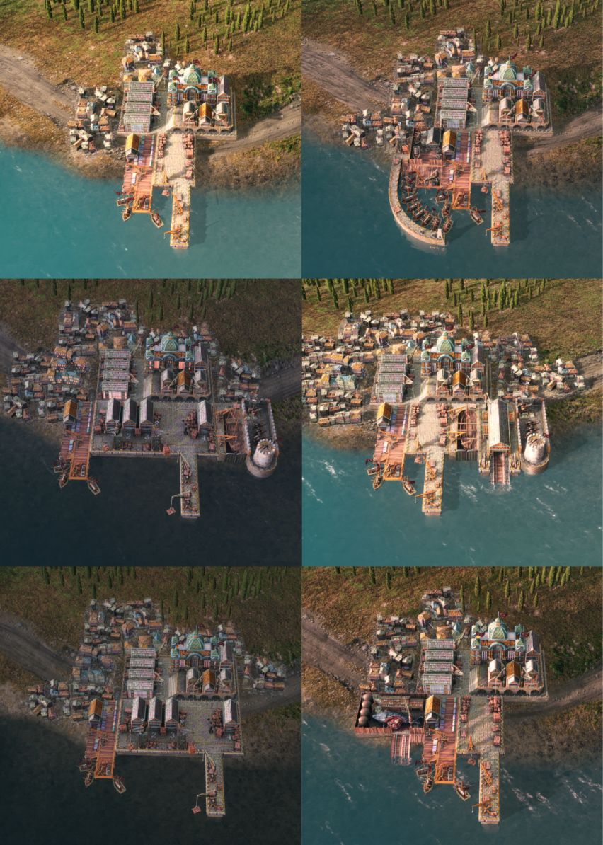 先說說我們對港口的改動吧。此前,港口中心與其他中心頗有不同,由於在這些區域中建造的大多數建築都是作爲實際港口中心結構的附屬物生成的,其位置相對於中心結構是預先確定的。換句話說,