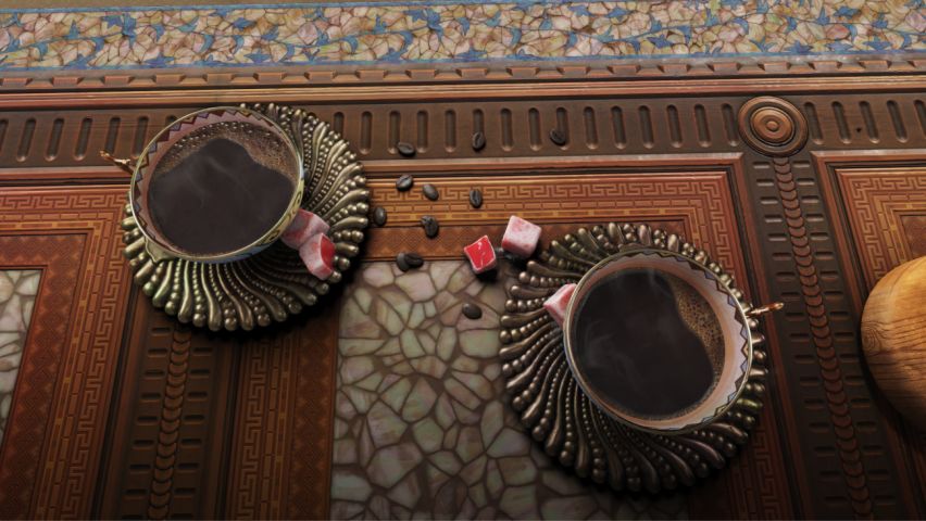 咖啡與土耳其軟糖,絕配無疑。細心的觀察者可能會注意到,此處的咖啡是着色器咖啡;着色器的讓咖啡更光滑、更明亮。