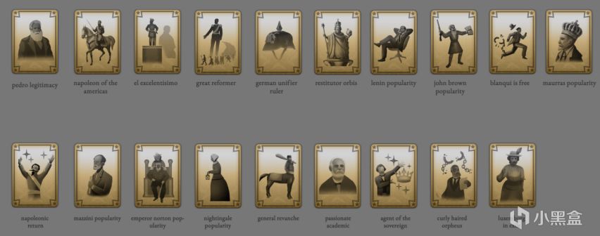 我們爲角色特質,或者說,“特殊角色”特質,設計了新的圖標。這些特質是遊戲中出現的史實人物的專屬特質,考慮到其特殊性,我們決定讓他們在視覺上也更特殊一些。