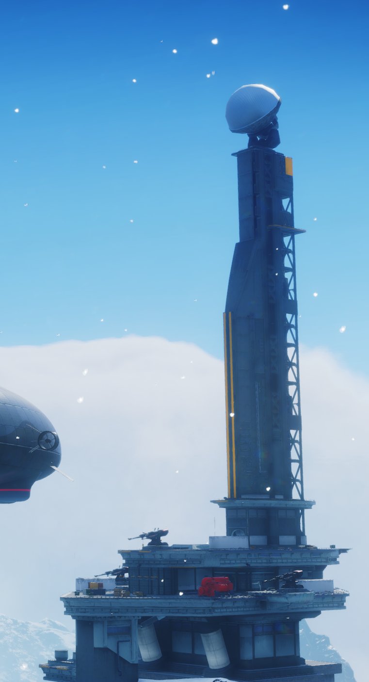 这个设施的具体表现为一座高手入云的通天塔,在最顶上有一个形似球形雷达的防护罩,这个设施就是尤拉帕计划的防御网络,每一个高塔都与天气作战核心平台相连接,这三座高塔都位于卡查地区,同时用来保护埃斯皮诺萨的安全。