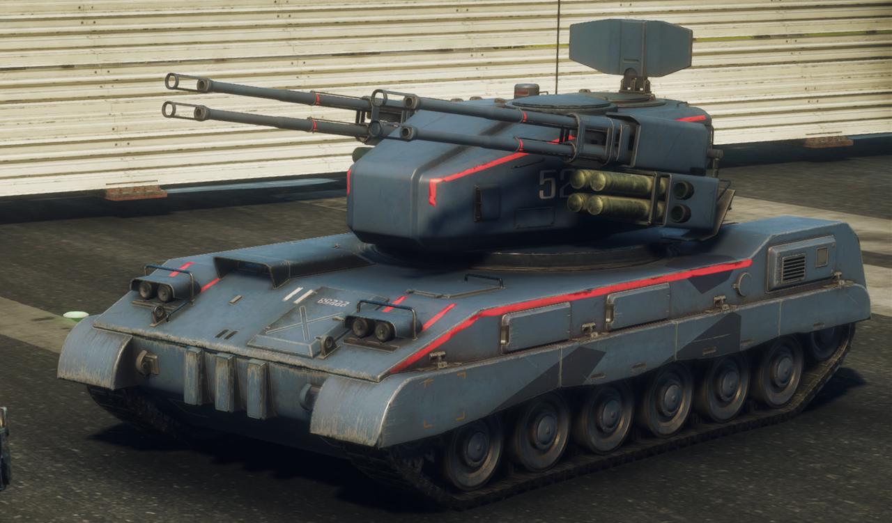“猎鹰者”防空坦克会和前者协同出现,它搭载了四管20毫米的高射炮,火力在射速和射程的加持下显得非常恐怖,移动平台两侧加装了侧裙装甲。就和世界上其他的防空坦克一样,它们最后都不可避免的走向了“放平”的命运,猎鹰者防空坦克的驾驶者也从来不在乎目标究竟是在天空还是地面,但这帮蠢货几乎每3~4秒钟才会扣动一次扳机,这使得防空炮完全没法发挥出它真正的实力。