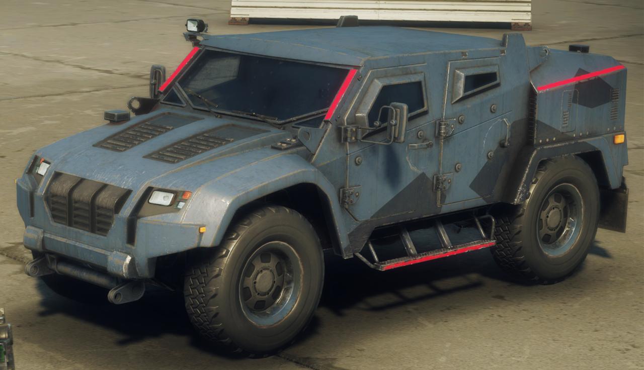 如果在一段时间内他们还是没有解决你,那么他们会开始乘坐“勇士”越野车前来,相比于前两个休闲类型的车辆,这辆越野车是正儿八经的官方巡逻车辆,严丝合缝,并且有最基本的装甲保护,平常在索利斯的大街小巷都能看到他们的身影。驾驶车辆时,这些佣兵也会将身体探出车外去攻击你,而且他们懂得最基本的驾驶战术,在高速追击时会尝试撞击你的车尾或是使用放牧战术逼迫你转向。
