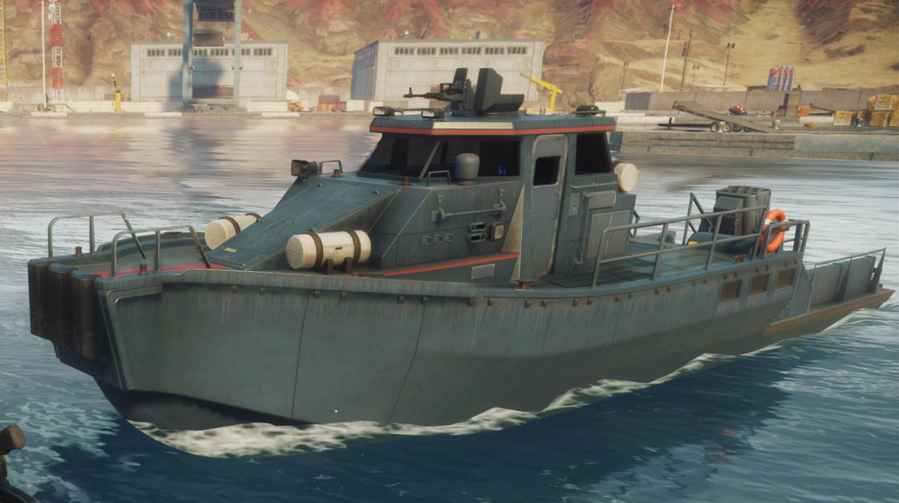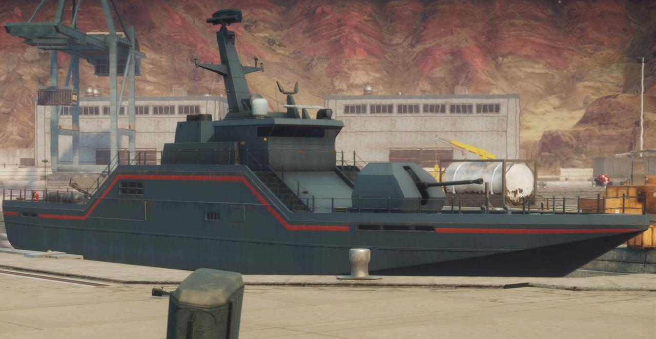 在海面上,暴雨巡逻船也会出动,别被他的名字骗了,除了船顶的机枪之外,在船的尾部还有一台迫击炮(游戏里是这么称呼它的,尽管它的外形怎么看也不像是迫击炮),其导弹升至高空后再从顶部攻击的方法可以让海面上的所有船只都无所遁形。