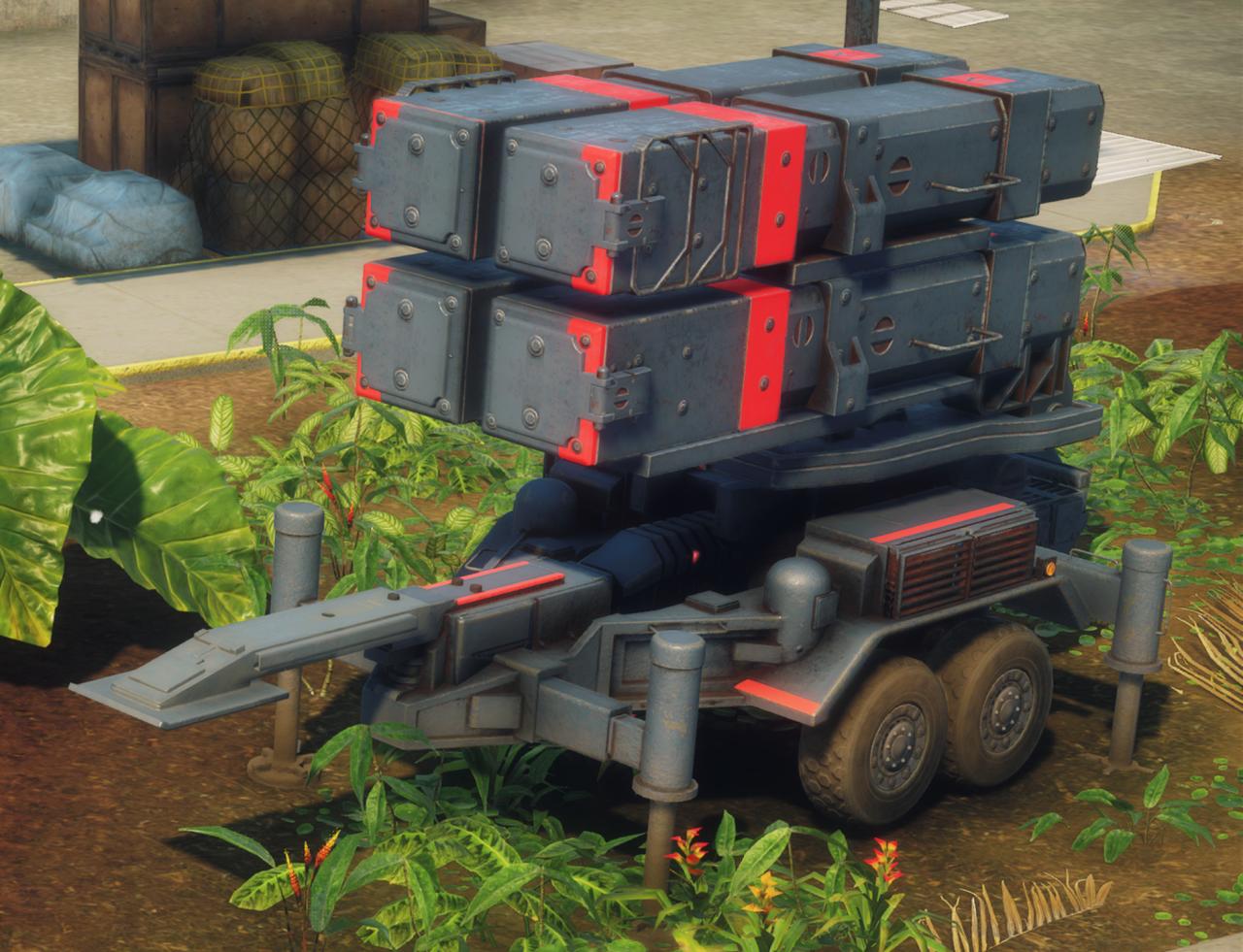常规对空武器,是各类基地中都有它的身影,内有16枚跟踪火箭弹,如果侦测到里科乘坐飞行器进入它的侦测范围,它会打开防护罩并锁定目标,但它的跟踪能力着实有待加强。
