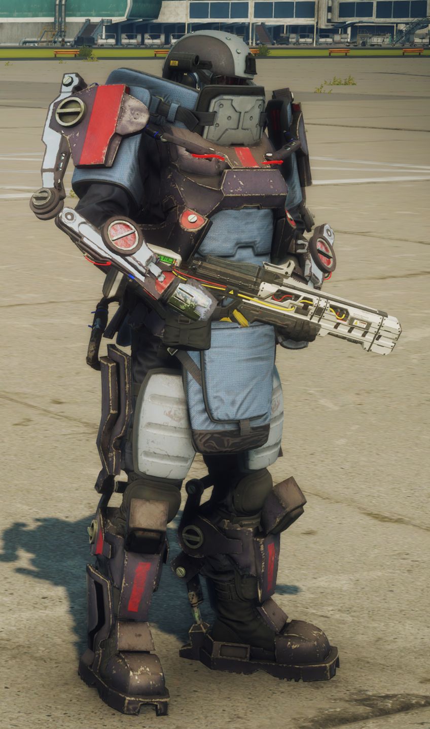 黑手军将这存在于无数纸面理论中的兵种成功挪到了现实,作为最能拿得出手的战斗人员,泰坦士兵全身都被各类防护材料捂的严严实实,身体上以重型防弹背心为底在外设套了一架动力外骨骼系统,四肢上也有厚实的装甲板防护,头部的防弹头盔和挡板可以抵御数发近距离的步枪弹直射。泰坦士兵不光只会坐镇机密军事设施,在一般的警卫亭中也有露面。